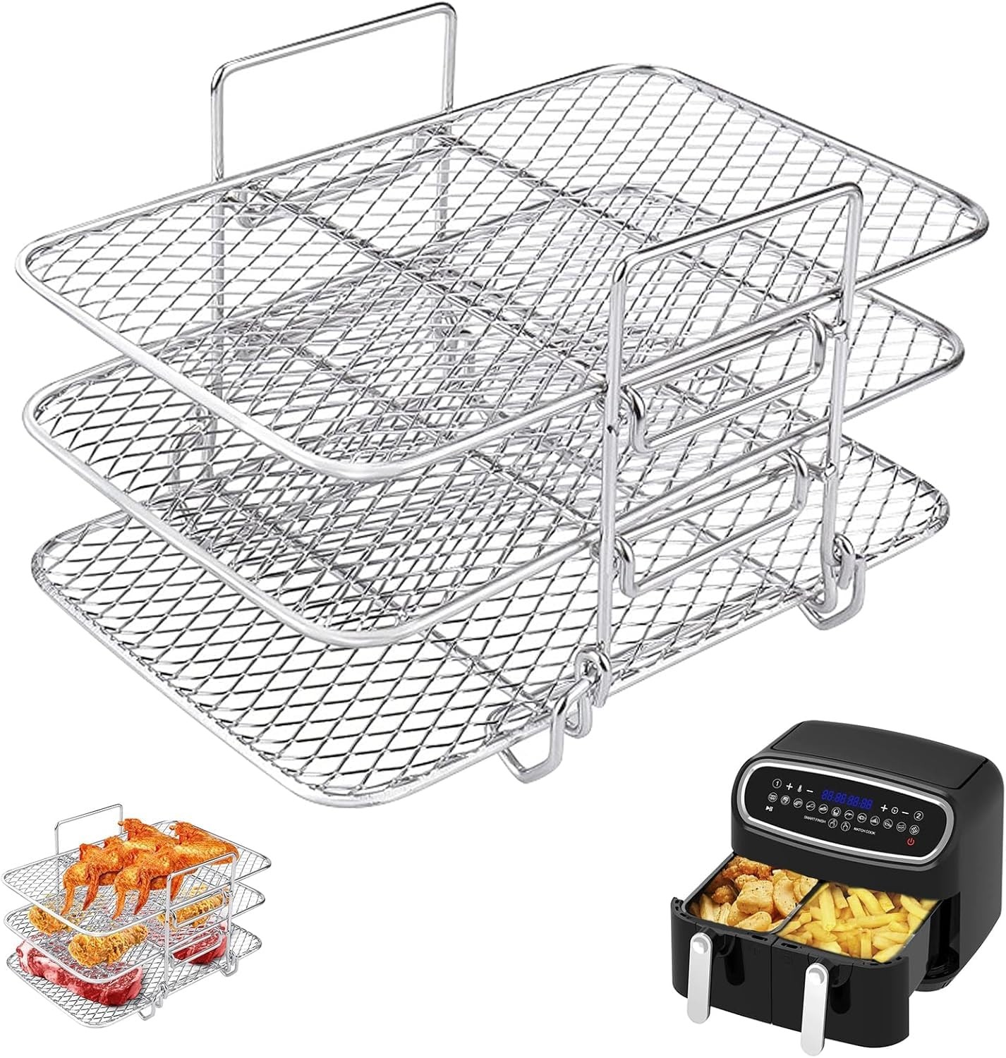 SHUOMAO Air Fryer Rack for Ninja, 3 Layers 304 Stainless Steel Grill Cooking Rack,Air Fryer Accessories for Ninja Foodi AF300UK,AF400UK,Salter/Instant/Tower/EMtronics Dual Zone Air Fryer