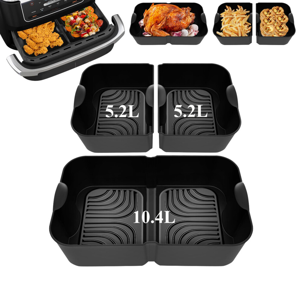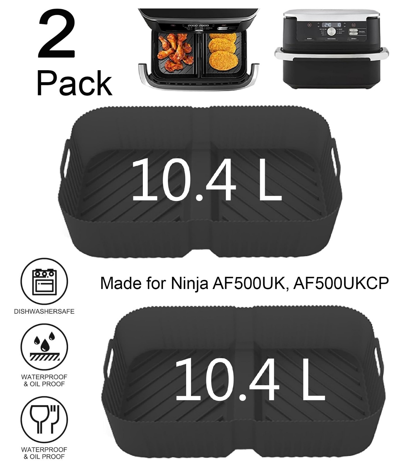 LADYSONS Silicone Air Fryer Liners for Ninja AF500UK 10.4L, Air Fryer Accessories, 10.4L & 10L Different Two Size Dual Drawer Air Fryer, Only