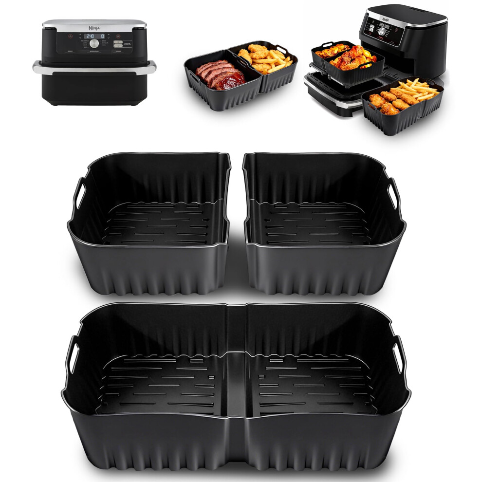 Silicone Air Fryer Liner 3PCS for Ninja AF500UK, Large Reusable Pot Basket Inserts, Dual Accessories for Air Fryer