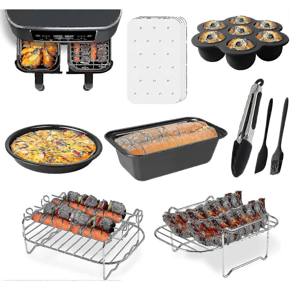 Air Fryer Accessories, Set Of 9 Fit Compatible Ninja Dual Air Fryer Af300uk, Af400uk