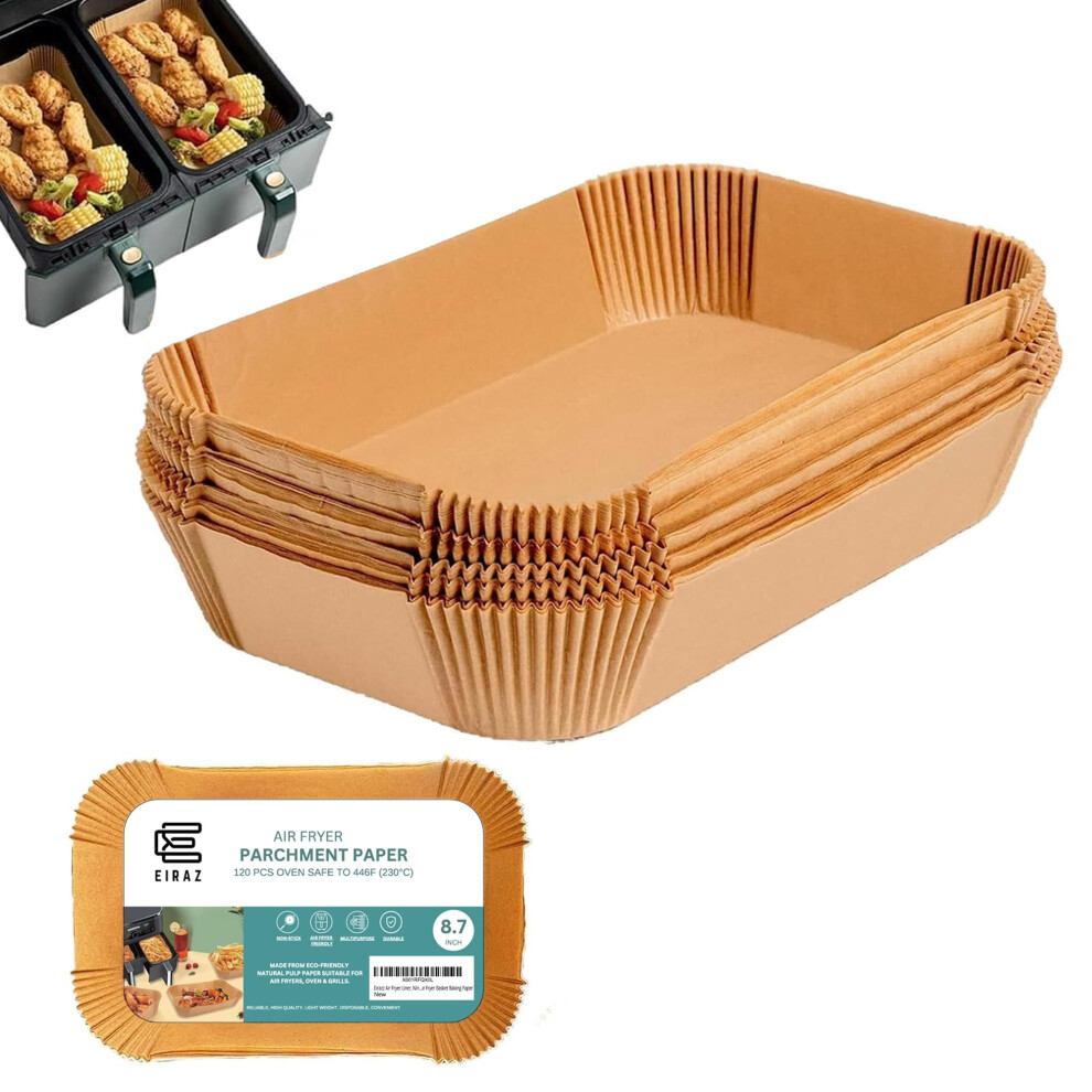 EIRAZ Air Fryer Liners Pack of 120, Disposable Rectangular Air Fryer Accessories, Airfryer Liners for Ninja AF300UK AF400UK, and DualZone Air Fryer (8.7 Inches)