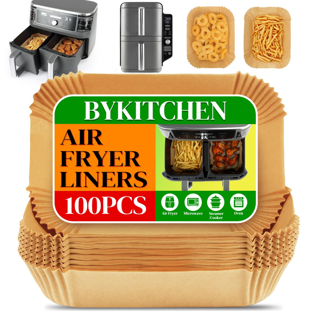 BYKITCHEN 100pcs Air Fryer Liners for Ninja Dual, Air Fryer AF300UK AF400UK Accessories, Disposable Air Fryer Parchment Paper Liner Square, Compatible