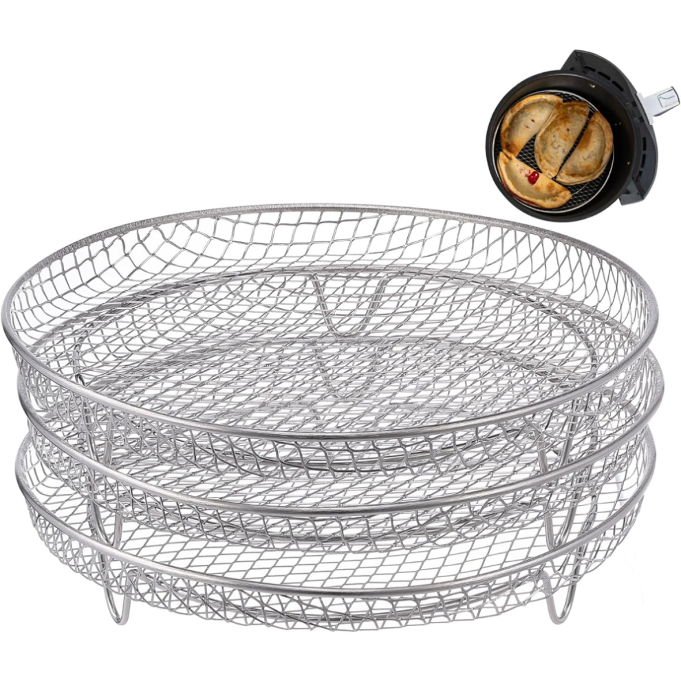 Air Fryer Rack for Ninja Air Fryer 3 Layer Air Fryer Accessories Stainless Steel Dehydrator Rack Stackable Round Air Fryer Basket Versatile Dehydrator