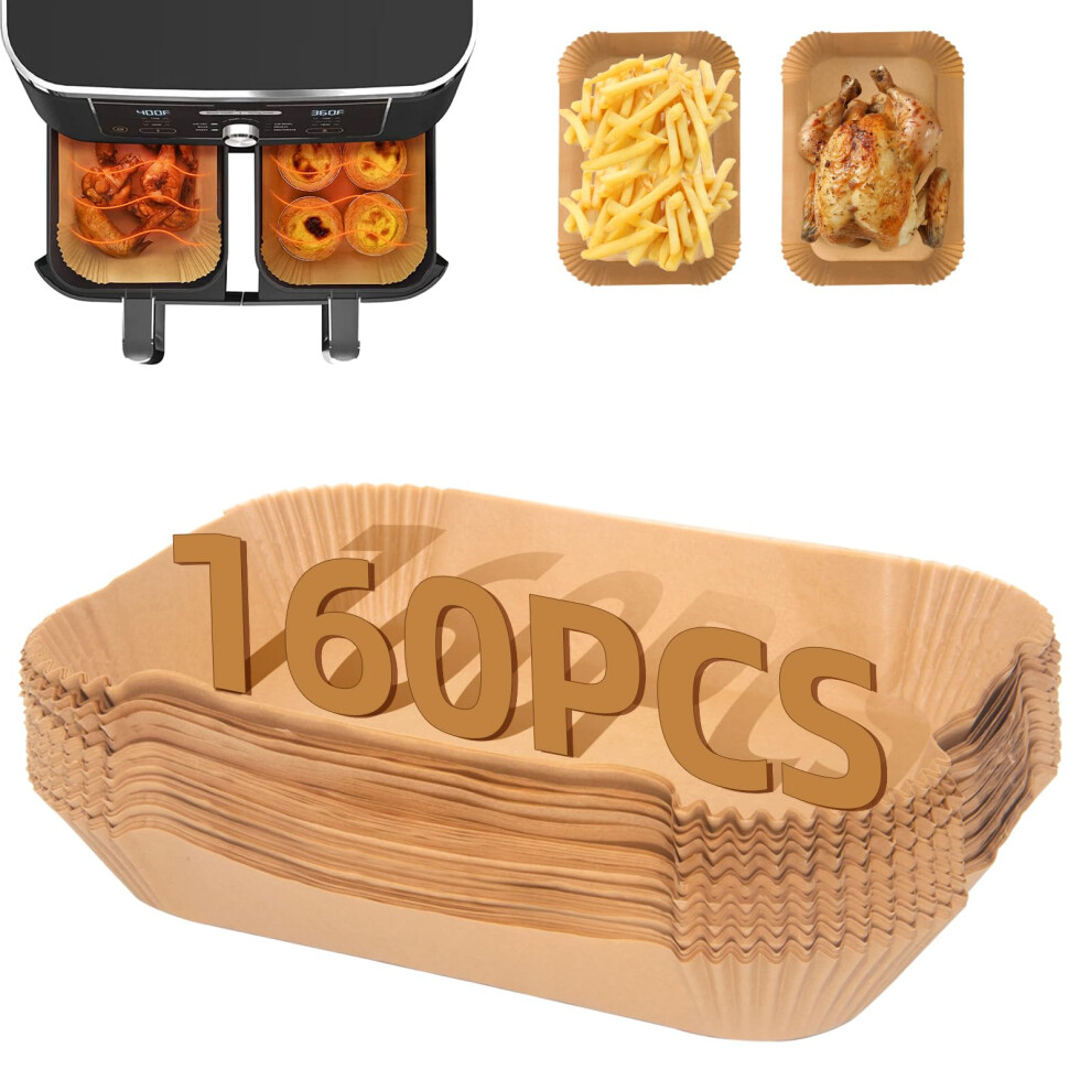 160PC Air Fryer Liners, FEEZOM Ninja Air Fryer Paper Liners for Ninja Air Fryer Dual, Disposable Air Fryer Accessories Liners for Ninja AF300UK AF400UK, Salter, Tower and Other Dual Zone Air Fryer