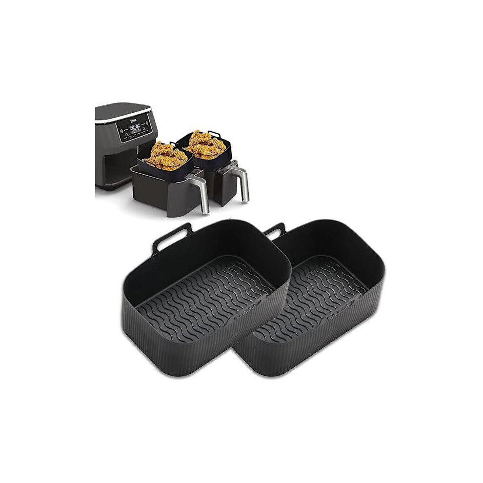 2Pcs Silicone Air Fryer Liners for Ninja Air Fryer Dual AF300EU AF400EU, Reusable Air Fryer Silicone Liner, Rectangular Airfryer Silicone Pot Baking