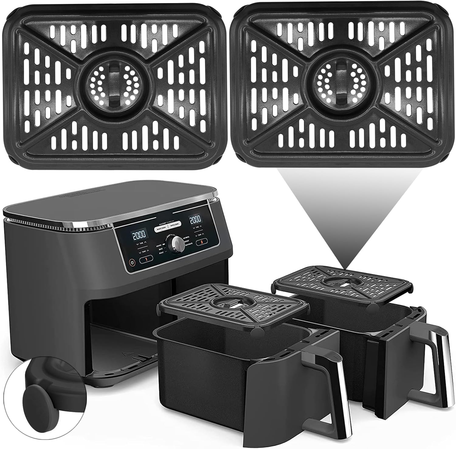 2 Pack Air Fryer Grill Pan for Ninja Foodi AF400UK 9.5L 6 in 1 DualZone 2 Drawe