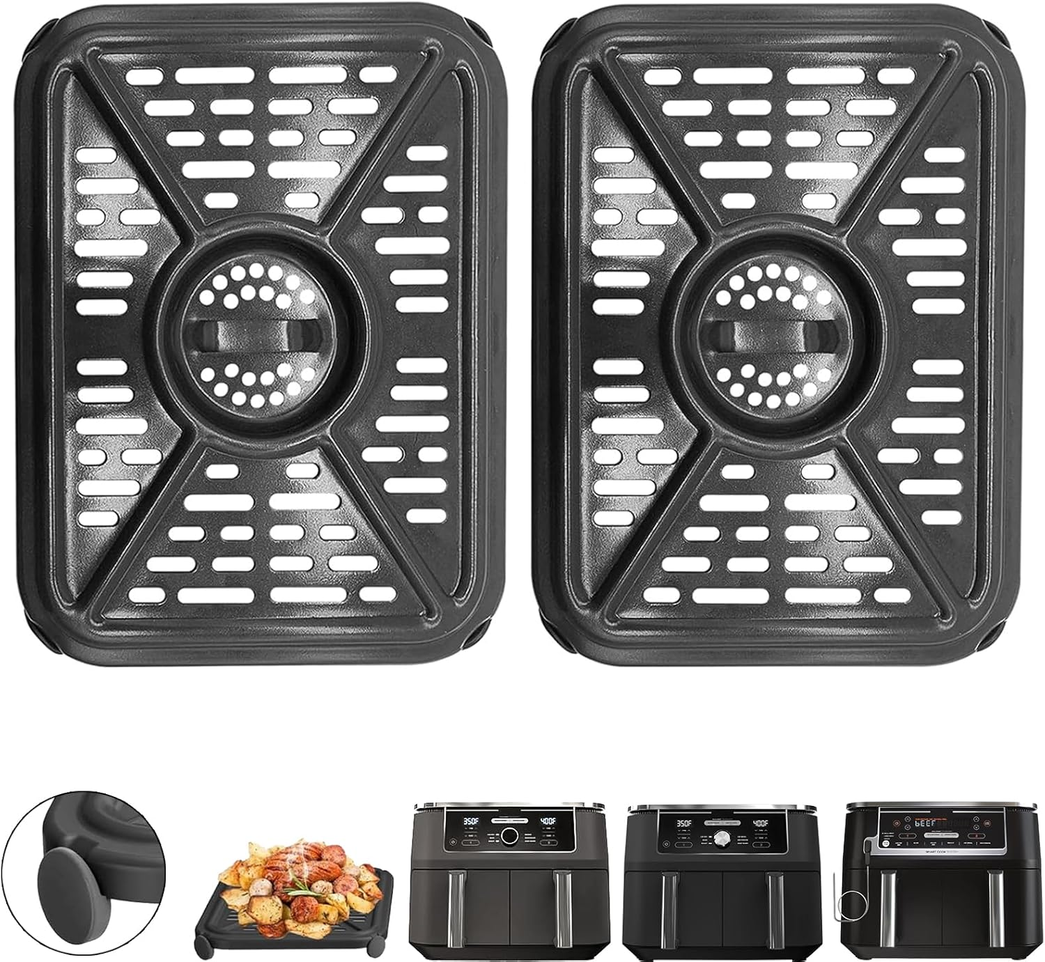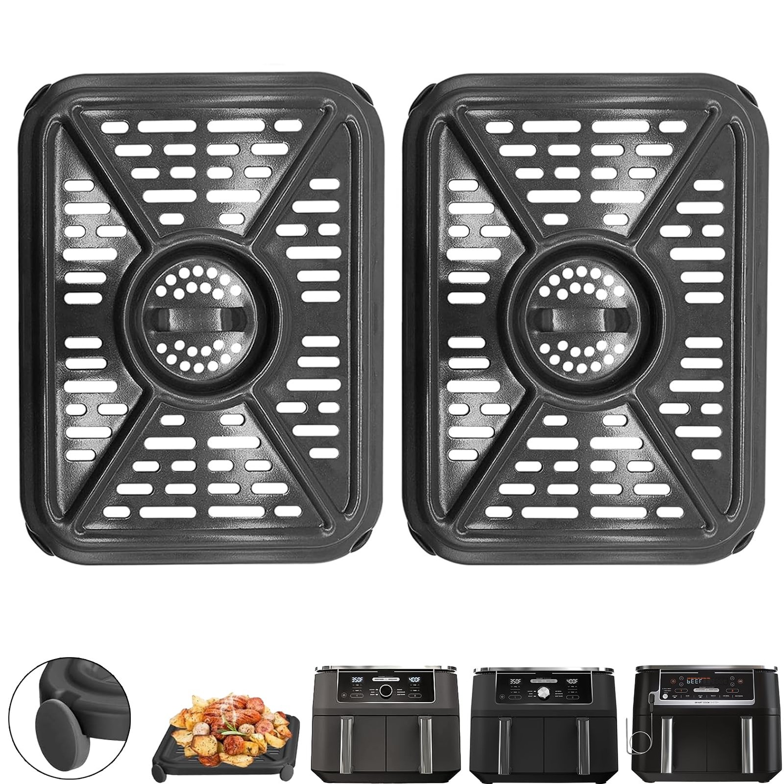 GCQ Air Fryer Grill Pan for Ninja Foodi AF300UK 6 in 1 7.6L Dual Zone Digital Air Fryers, 2 Packs Replacement Air Fryer Crisper Plate Grill Plate Tray Accessories with Rubber Bumpers, Dishwasher Safe