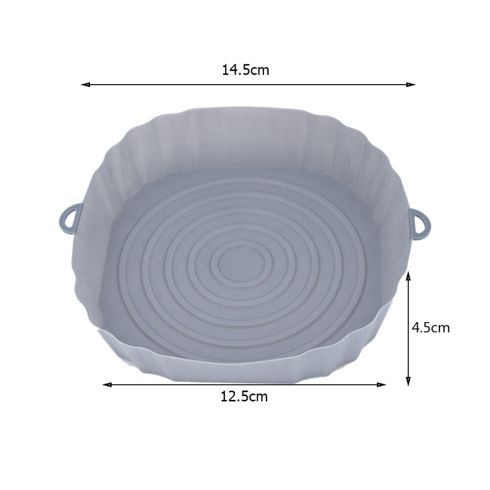 (Grey 14.5cm) Air Fryer Silicone Plate Reusable Easy To Clean Oven Baking Tray Ninja Liner Pizza Plate Grill Pan Mat Air Fryer Accessories