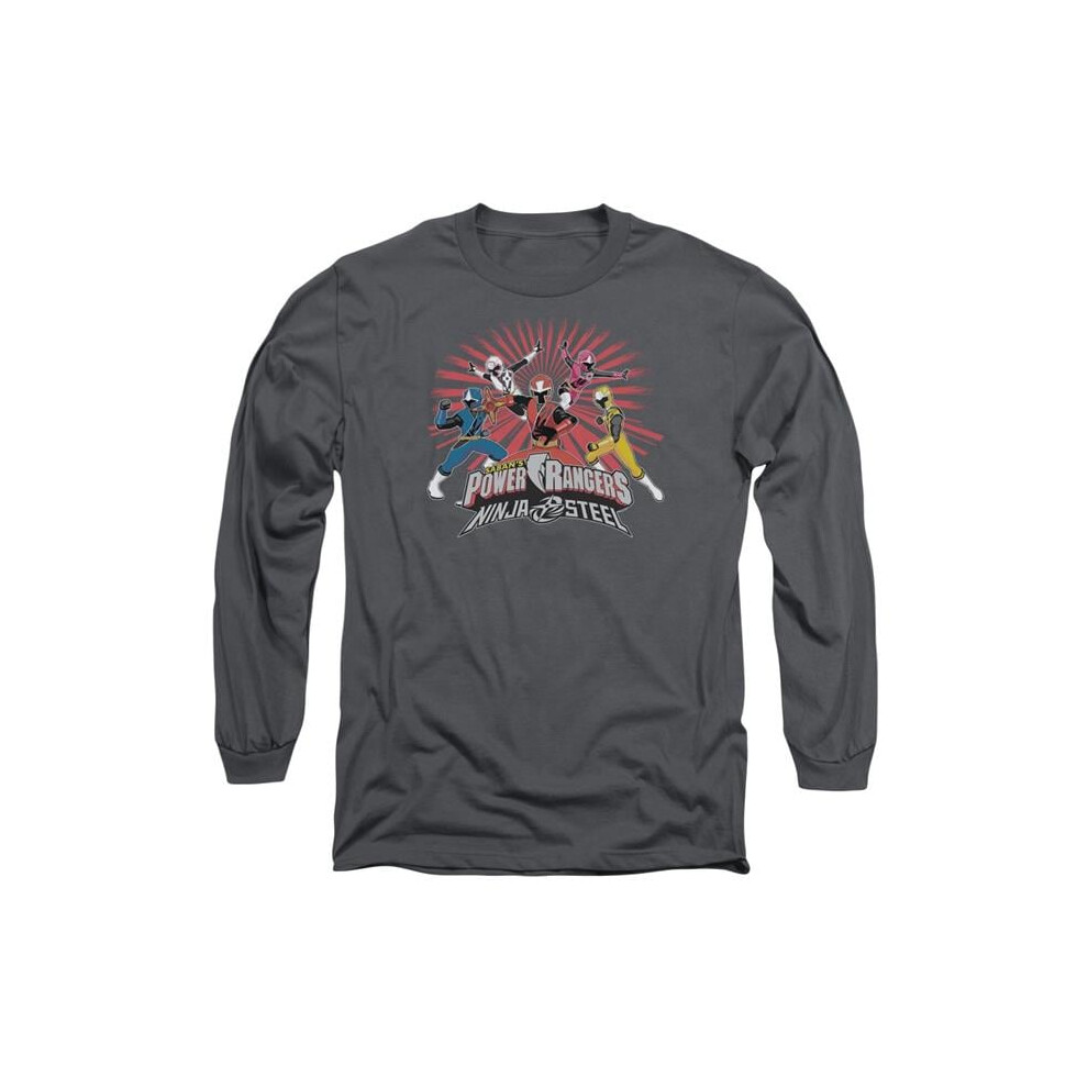 Trevco Sportswear PWR2300-AL-6 Power Rangers Ninja Blast Adult Long Sleeve T-Shirt, Charcoal - 3X