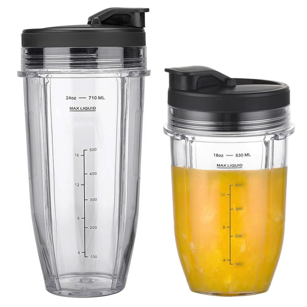 2 Pack Blender Cups for Ninja Auto-iQ BN495UK BN750UK BN800UK CB100UK CB350UK TB301UK TB401UK, Nutri Ninja Blenders Single-Serve Cup Replacement 530ml & 710ml with Flip Top Lids