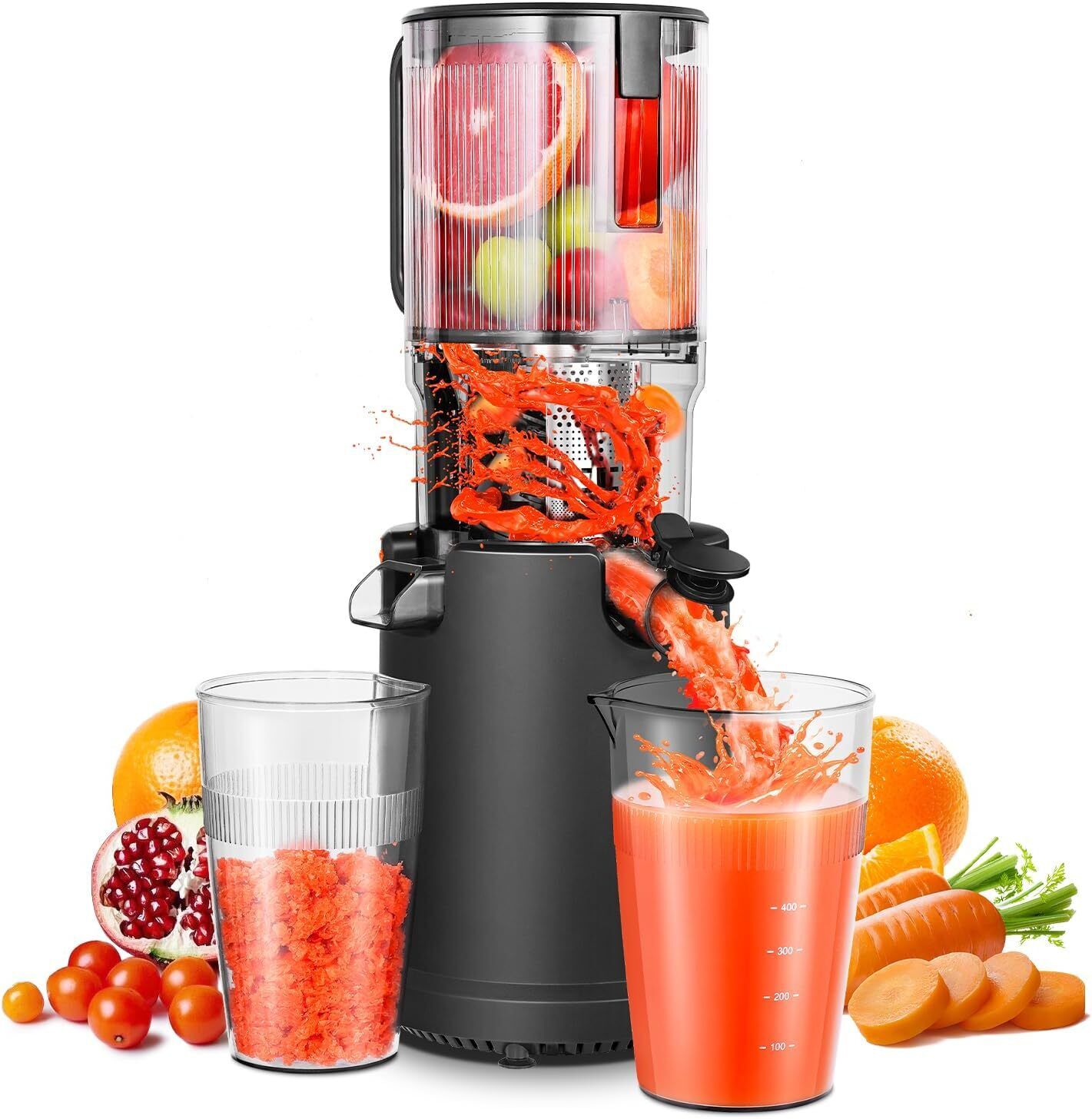 AMZCHEF Cold Press Juicer Machines, Slow Juicers with 126 MM Large Feed Chute for Whole Fruit and Vegetable, Durable Stainless Steel Juicer, Auto-cutting Auger, Double-Layer Filter