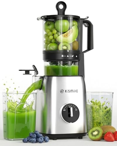 Kismile Cold Press Juicer, Slow Juicer 135mm Extra-large Feed Inlet, High Juice Yield, BPA FREE, Juicer Machines for Whole Fruits and Vegetables, Easy to Clean, Knob