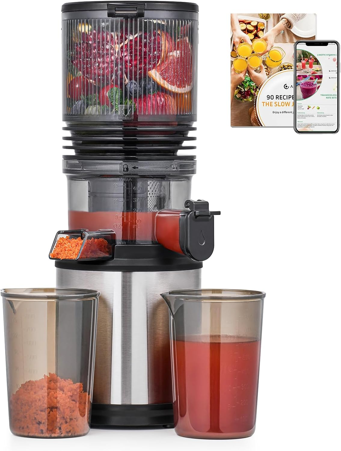 AMZCHEF Cold Press Juicer Machines, Slow Juicers with 118 MM Large Feed Chute for Whole Fruit and Vegetable, Durable Stainless Steel Juicer, Auto-cutting Auger, Double-Layer Filter