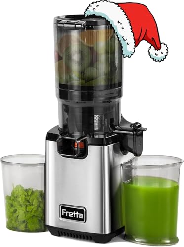 Fretta Juicer Machines,Cold Press Juicer w/135MM Wide Mouth for Whole Fruits and Vegetables,Masticating Juicer,Quiet and High Juice Yield,Easy to Clean,BPA Free,Durable Stainless Steel Body