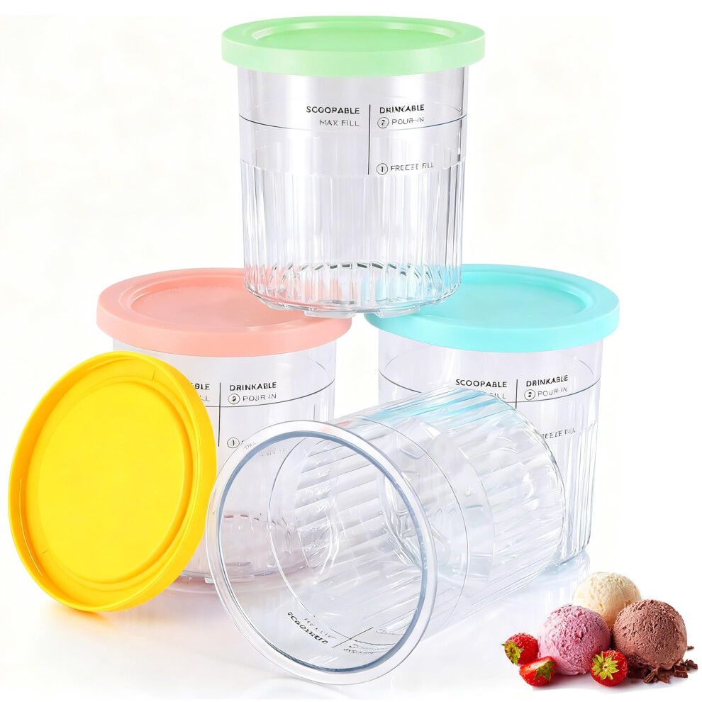 for Ninja CREAMi Deluxe Tubs 4 Pack with Color Lids, Replacement Pint Containers Pots for Ninja Creamy NC501UK NC501 NC500 Series Ice Cream Maker,