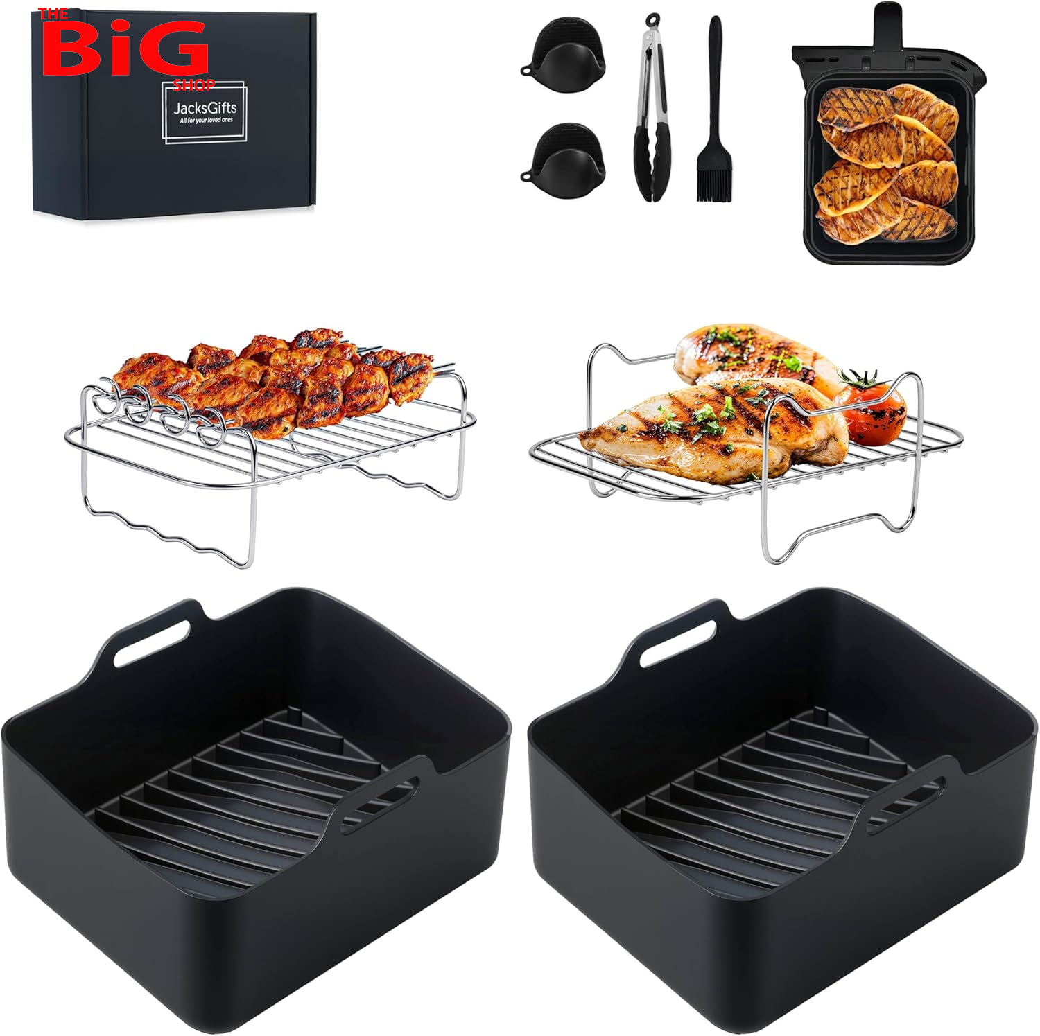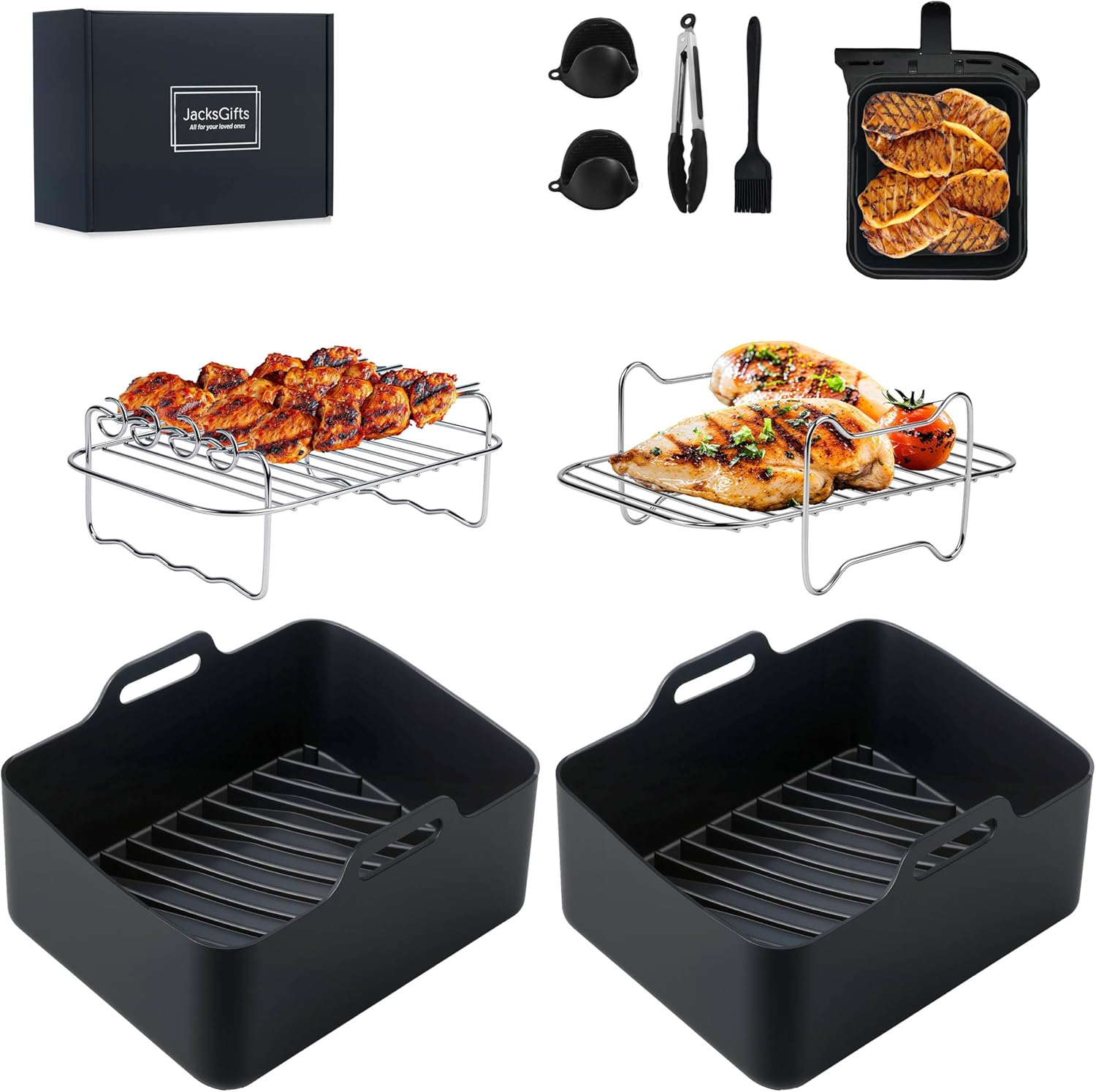 10PCS Air Fryer Accessories Pack - Stainless Steel Suitable for Ninja Food Dual Zone Air Fryer | Includes: 2 Dehydrator Racks | 4 Skewers | 2 Silicone