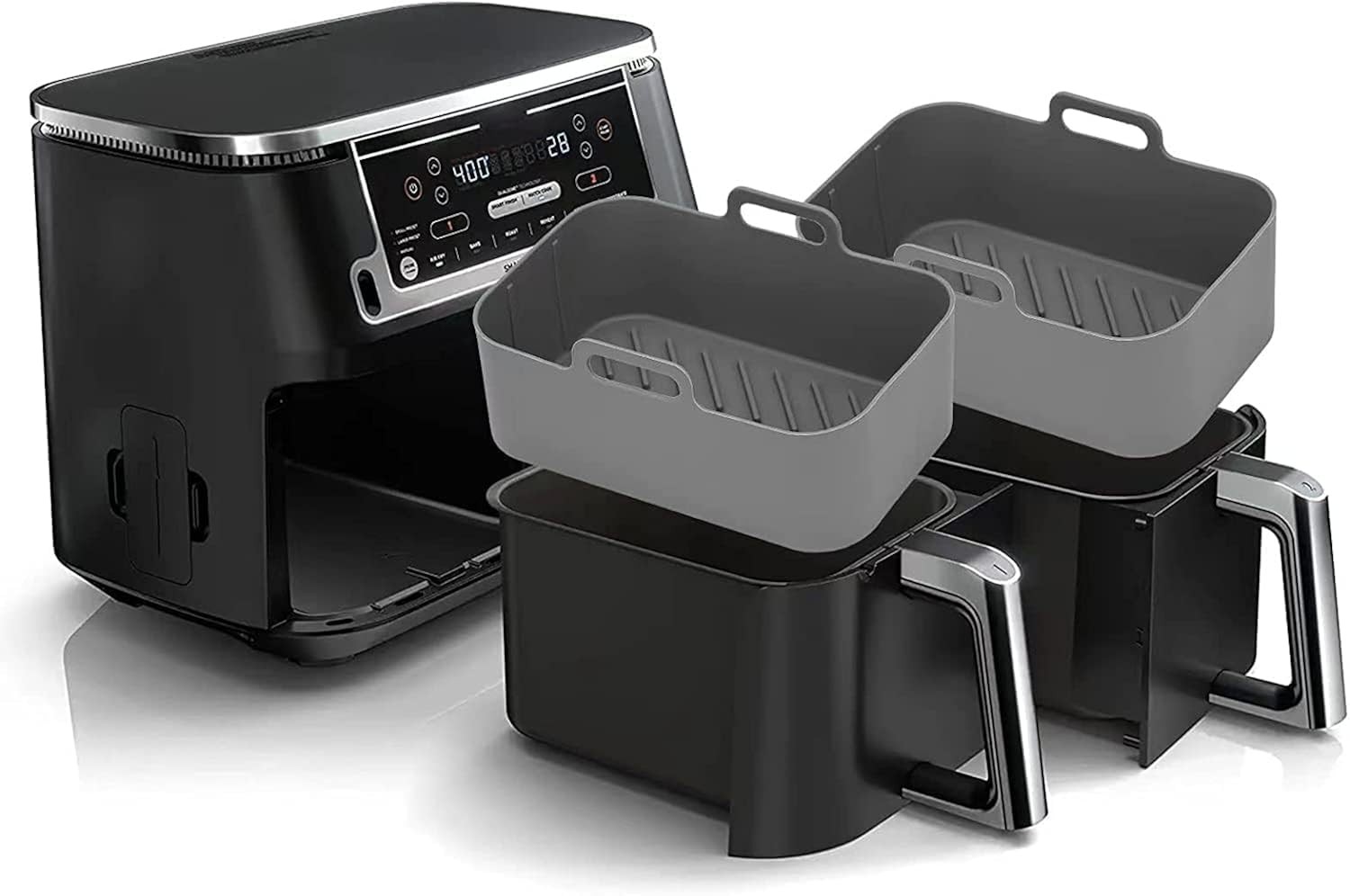 Silicone Air Fryer Liners for Ninja Foodi Air Fryer AF300UK, AF400UK, 2Pcs Ninja Foodi Dual Zone Air Fryer Accessories, Reusable Silicone Dual Basket