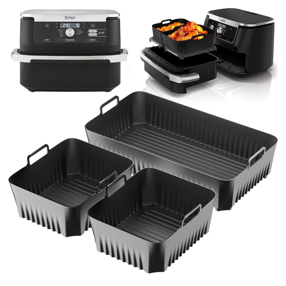 2Pcs Silicone Liners for Ninja AF500UK Accessories | Air Fryer Liner for Ninja Flexi Drawer 10.4L Air Fryer | Reusable Silicone Liners for Ninja Foodi Flexdrawer Dual Air Fryer