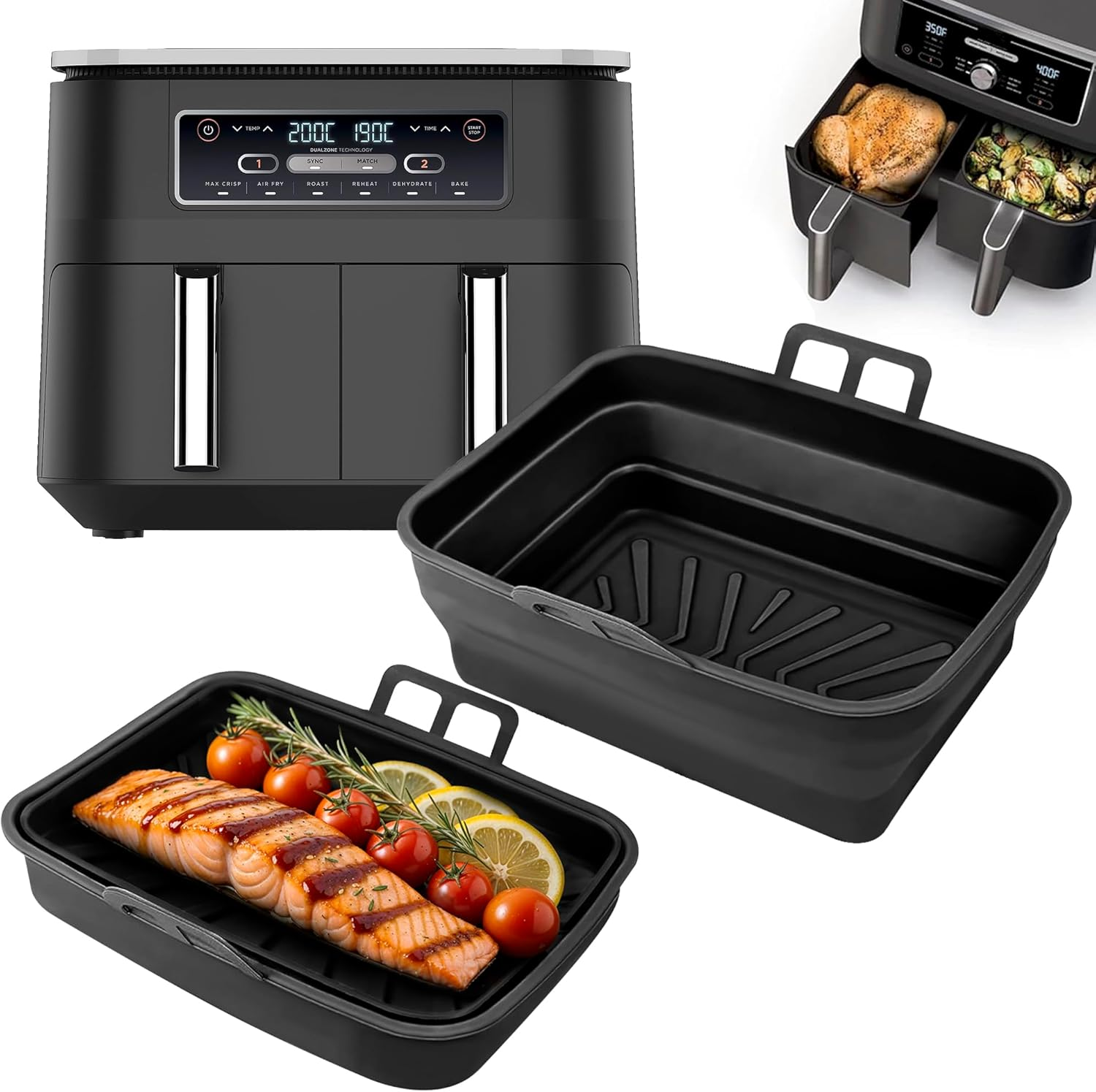 2PCS Foldable Air Fryer Liners Silicone for Ninja Foodi Max Dual Zone 9.5L Air