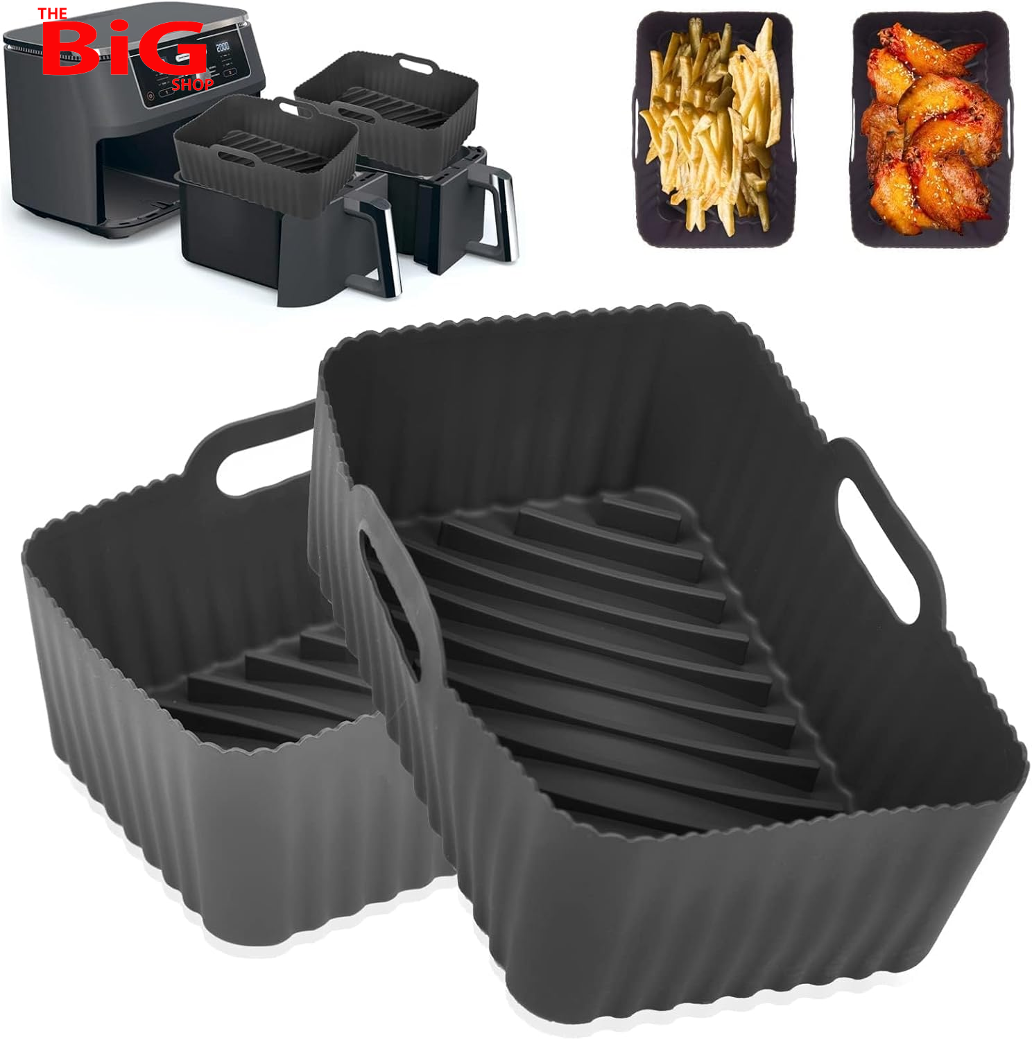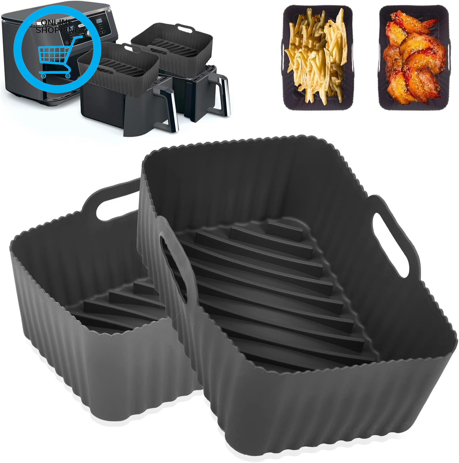 YQL Air Fryer Silicone Liner for Ninja/Tower Dual/Instant Vortex, 2PCS Silicone Air Fryer Liners Reusable Air Fryer Accessories for Ninja Foodi AF300UK, Salter Dual Air Fryer (Black)