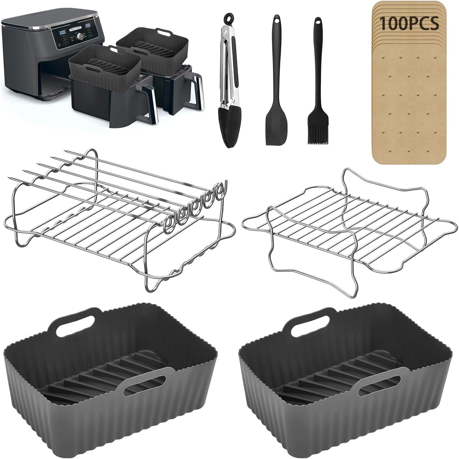 Ninja Air Fryer Accessories, 2Pcs Air Fryer Rack for Grill, Silicone Air Fryer Liners, Air Fryer Paper Liners for Ninja Dual AF300UK AF400UK AF451UK / Tower T17088 Dual Basket Air Fryer 7.6L-9.5L