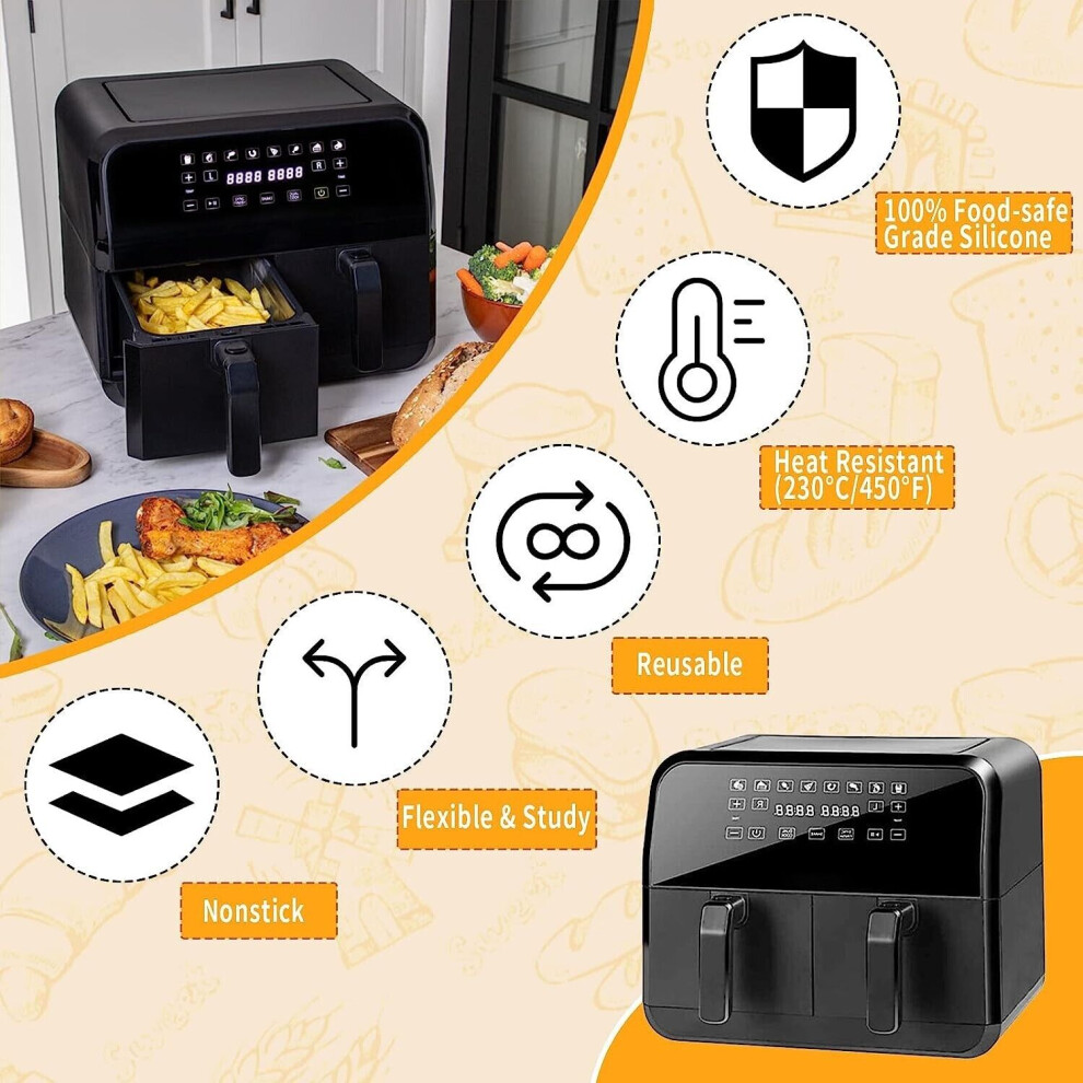 Reusable silicone frying pan 2121cm with divider, oil filter pad, dishwasher safe, suitable for COSORI, Ninja, Tefal, Vortex & other air fryers