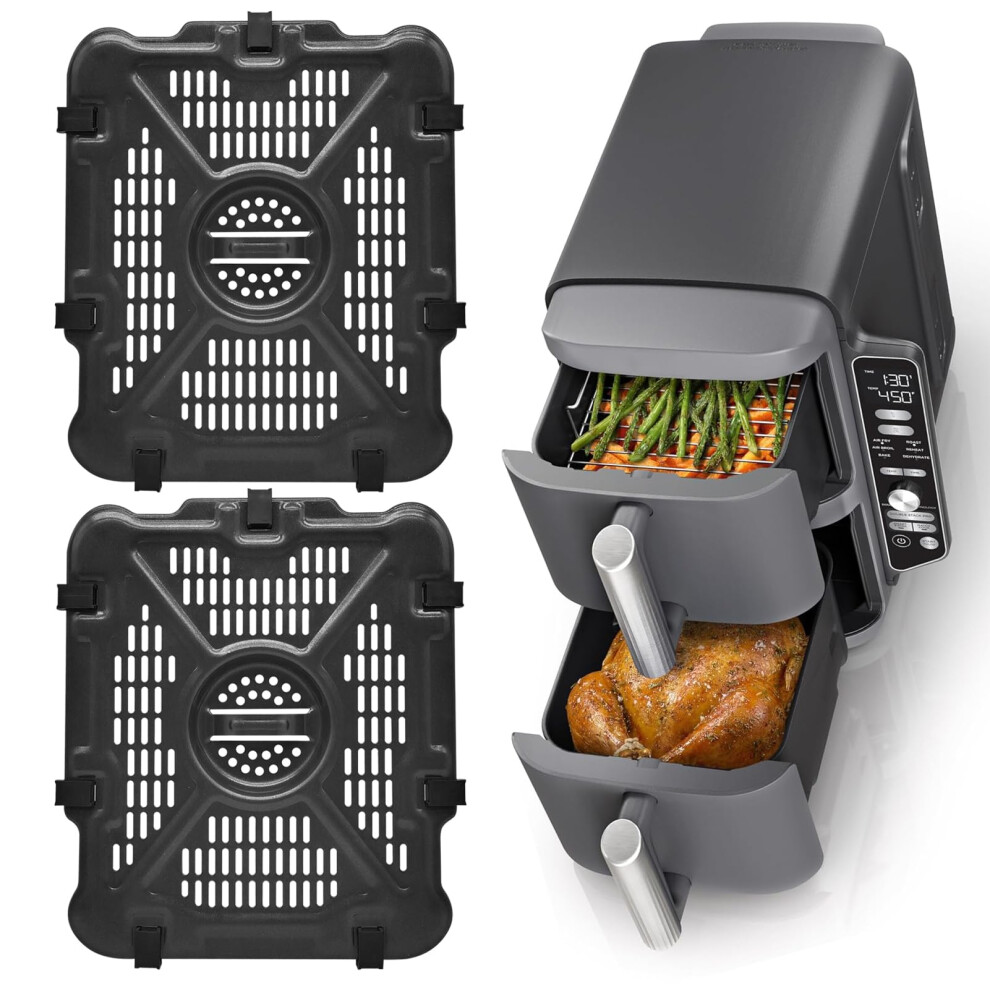 GCQ Air Fryer Grill Pan for Ninja Foodi AF300UK 6 in 1 7.6L Dual Zone Digital Air Fryers, 2 Packs Replacement Air Fryer Crisper Plate Grill Plate Tray Accessories with Rubber Bumpers, Dishwasher Safe