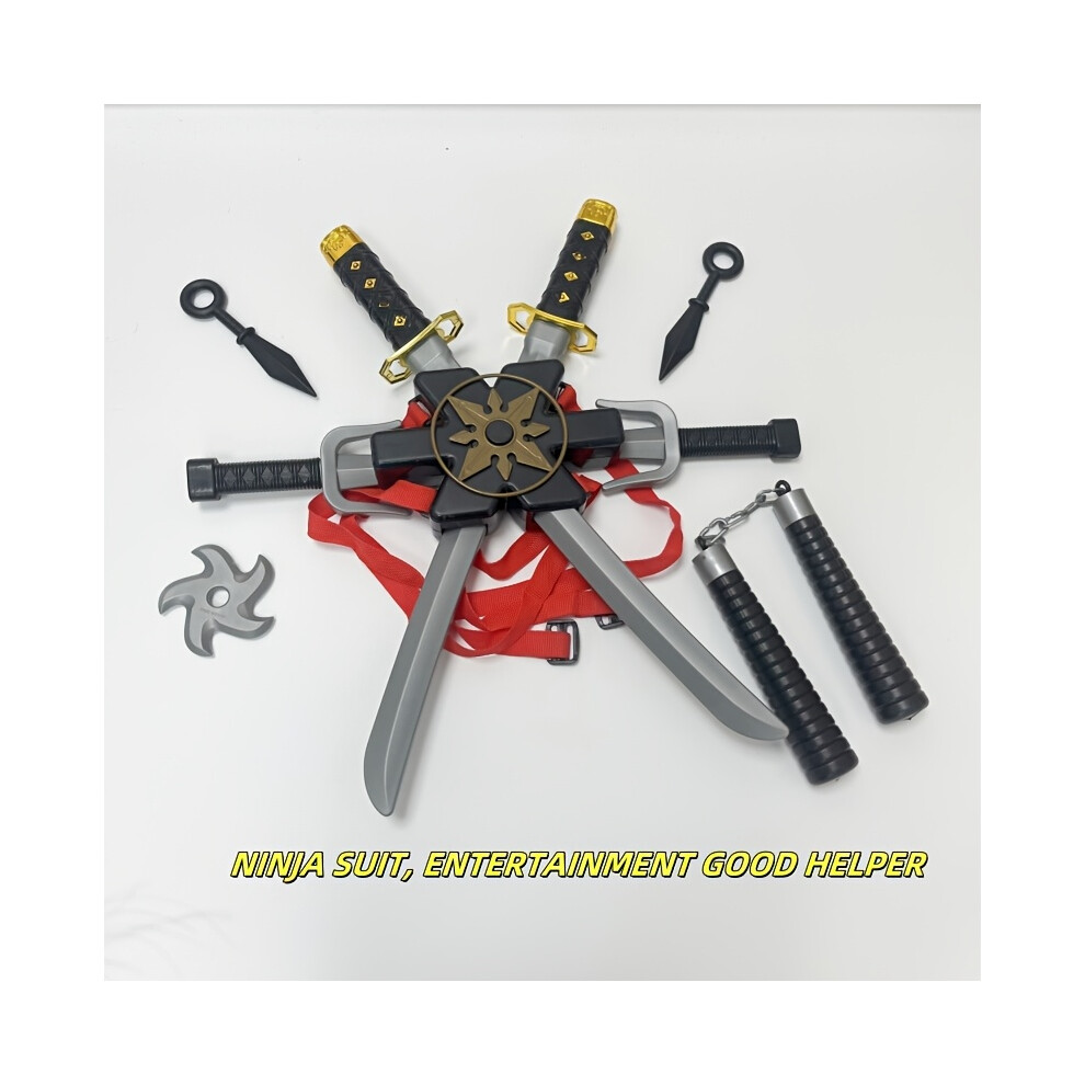 (9pcs) 9pcs Ninja-Inspired Costume Set with Backpack, Knife & Sword - ABS Resin, Street Style, Ideal for Cosplay, Parties & Stage Performance