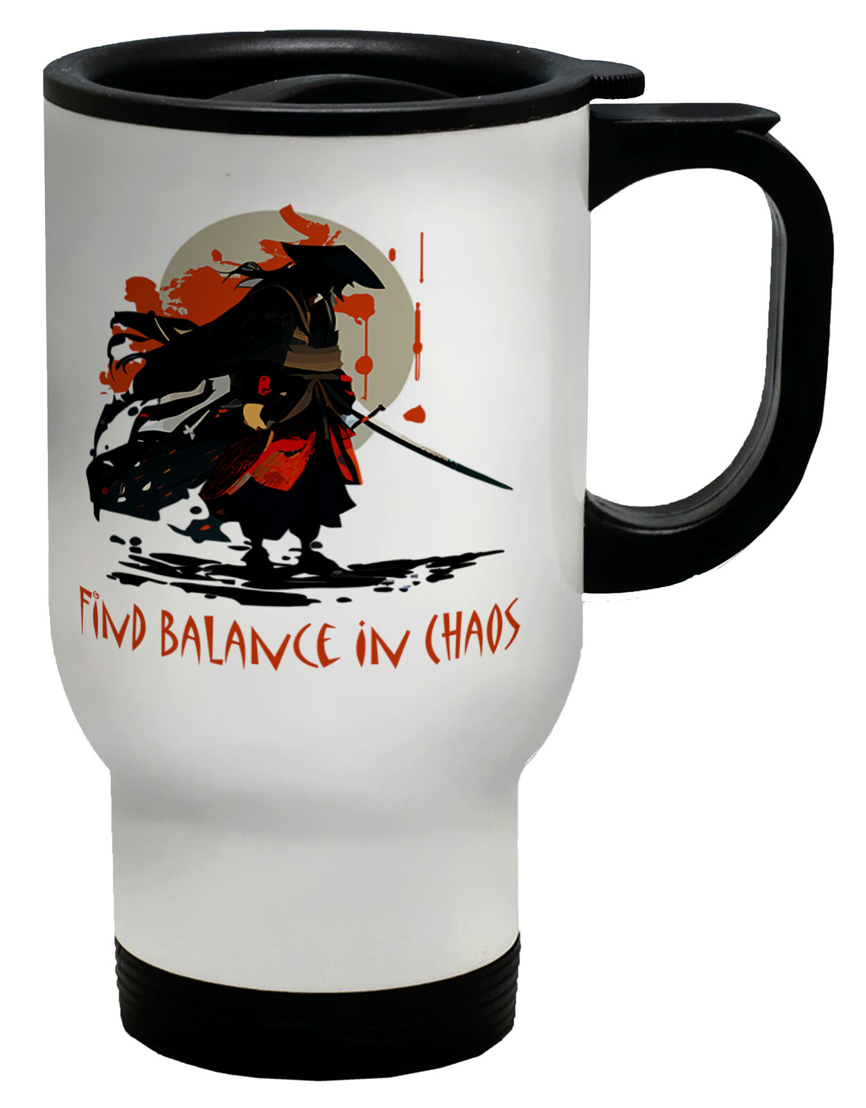Samurai Ninja Travel Mug Find Balance in Chaos Katana Cup Gift