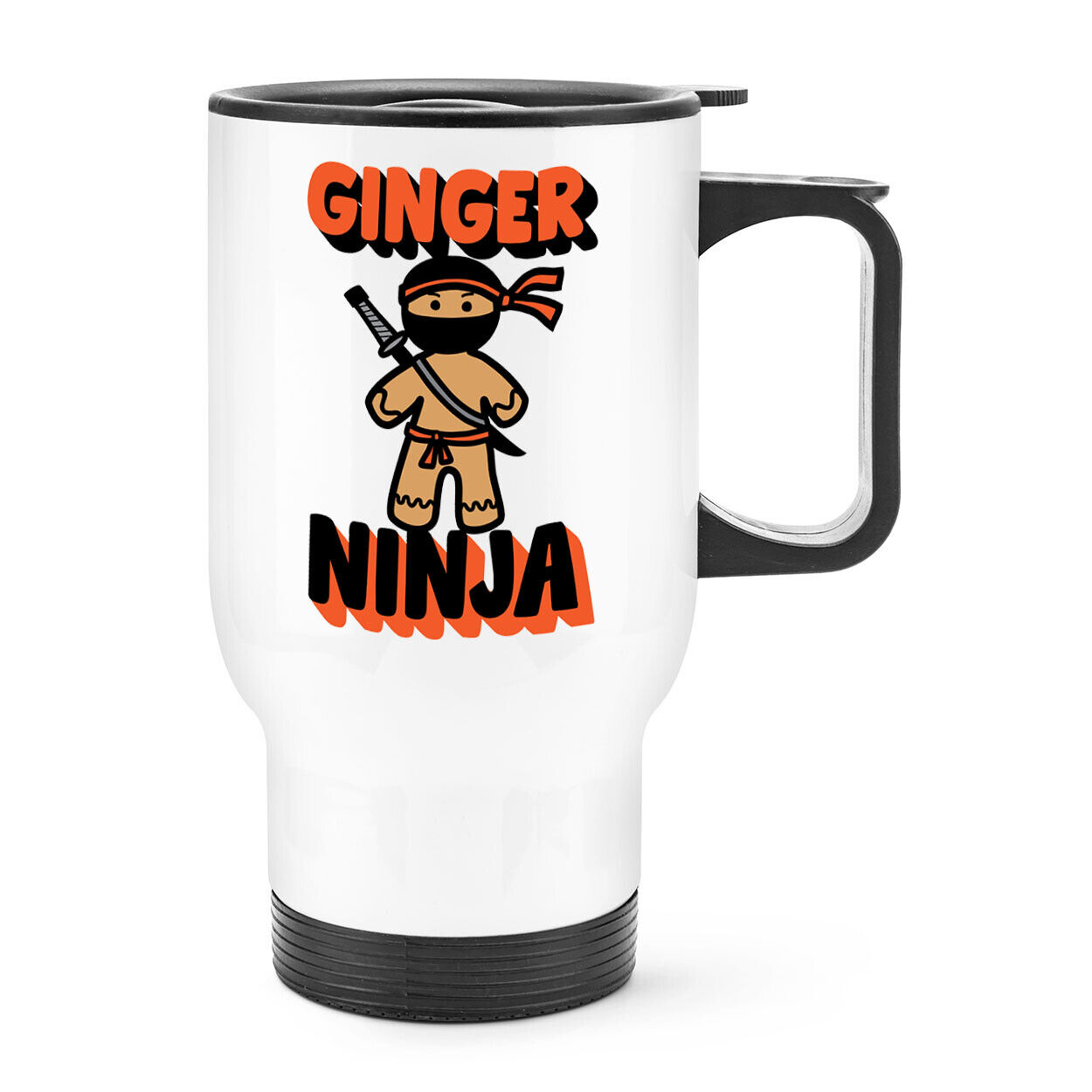Ginger Ninja Travel Mug Cup Handle Orange Funny Joke Humour Sarcastic Sarcasm
