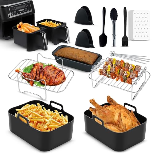 Air Fryer Accessories Set, 12Pcs for Ninja/Keplin/Tower/EMtronics/Instant Vortex 7.6L-9.5L Dual Air Fryer, Including Silicone Air Fryer Liners, Racks, Gloves, Bread Pan and Tools