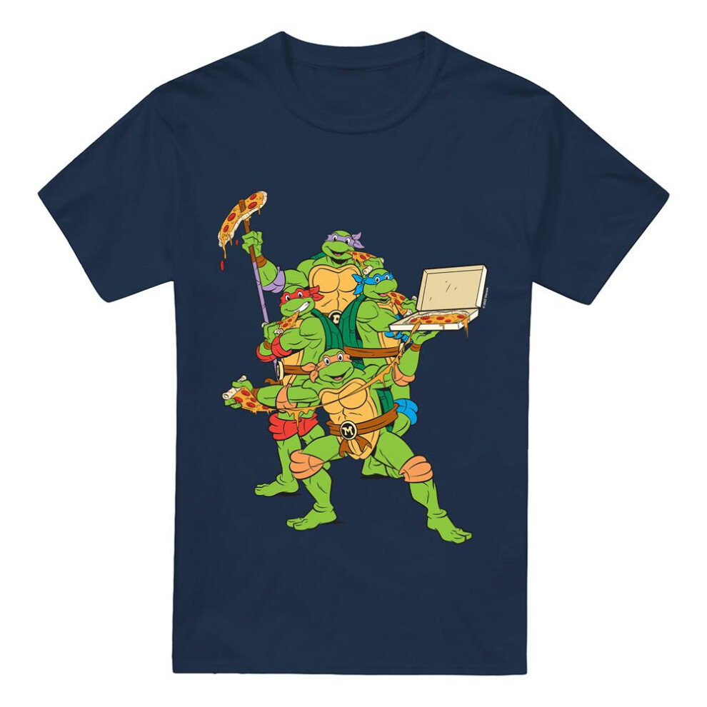 (M, Navy) Teenage Mutant Ninja Turtles Mens Pizza Party T-Shirt