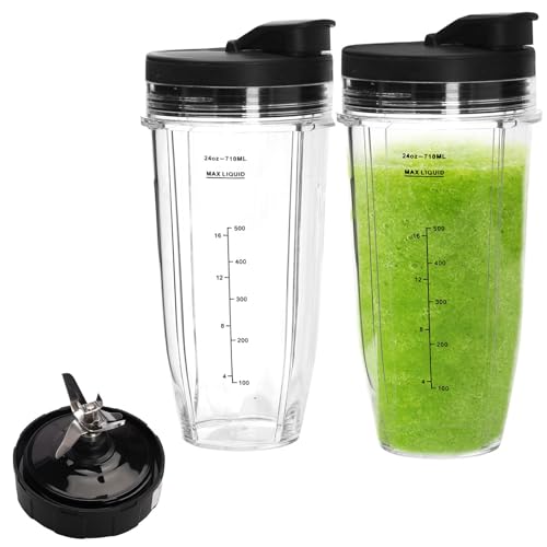 Yallmie 2pcs Blender Replacement Parts for Ninja Blender Cups Replacement, Smoothie Cup Replacement 7 Blades Blender Accessories Cup Replacement for BL2012 BL48 BL642Z BL680A BL682 NN100A NN101 (24OZ)