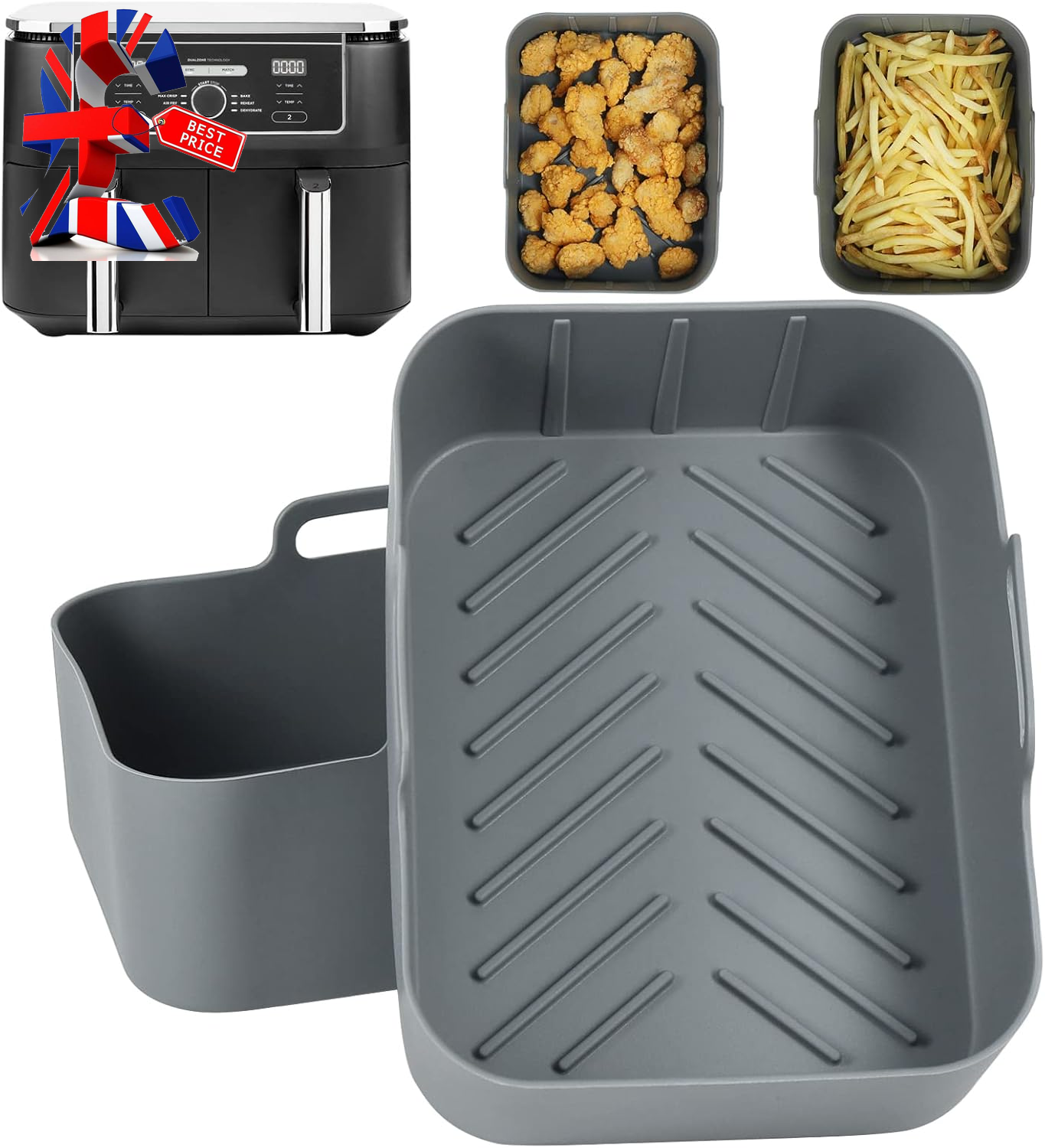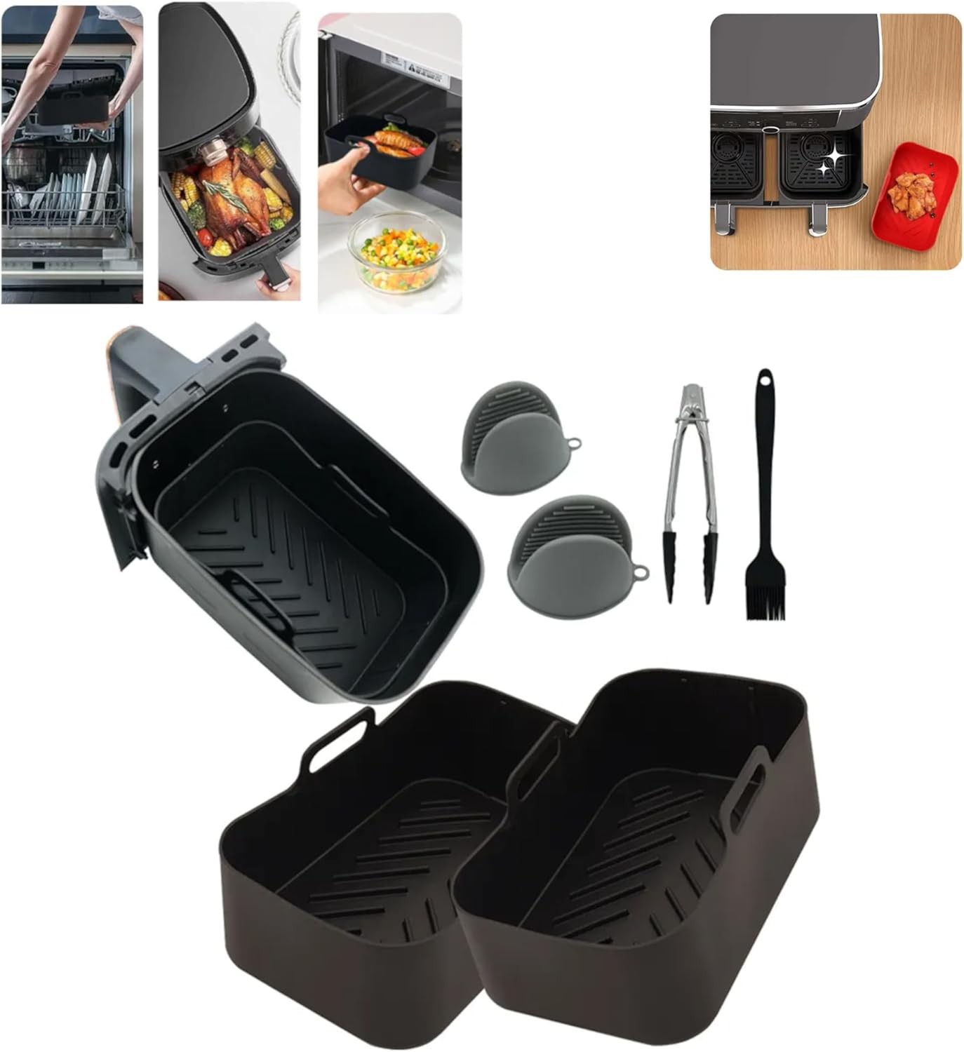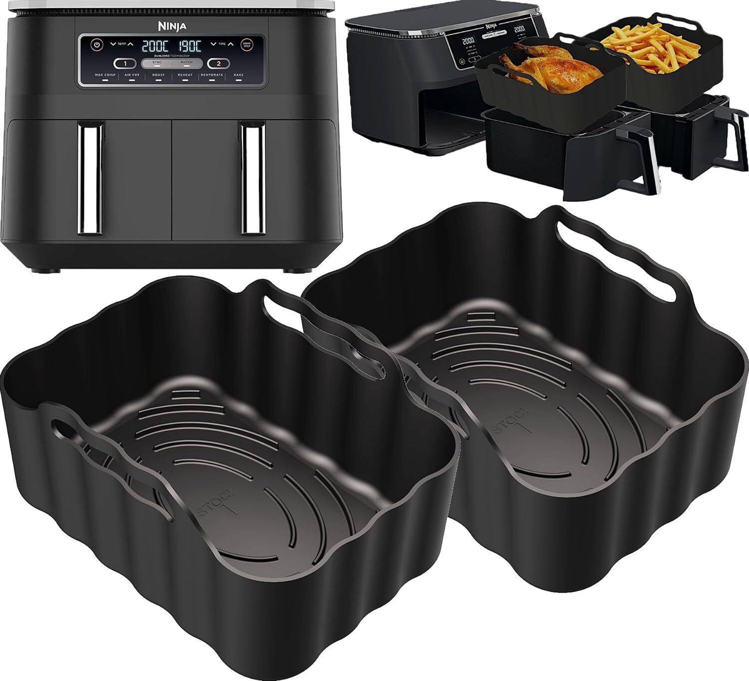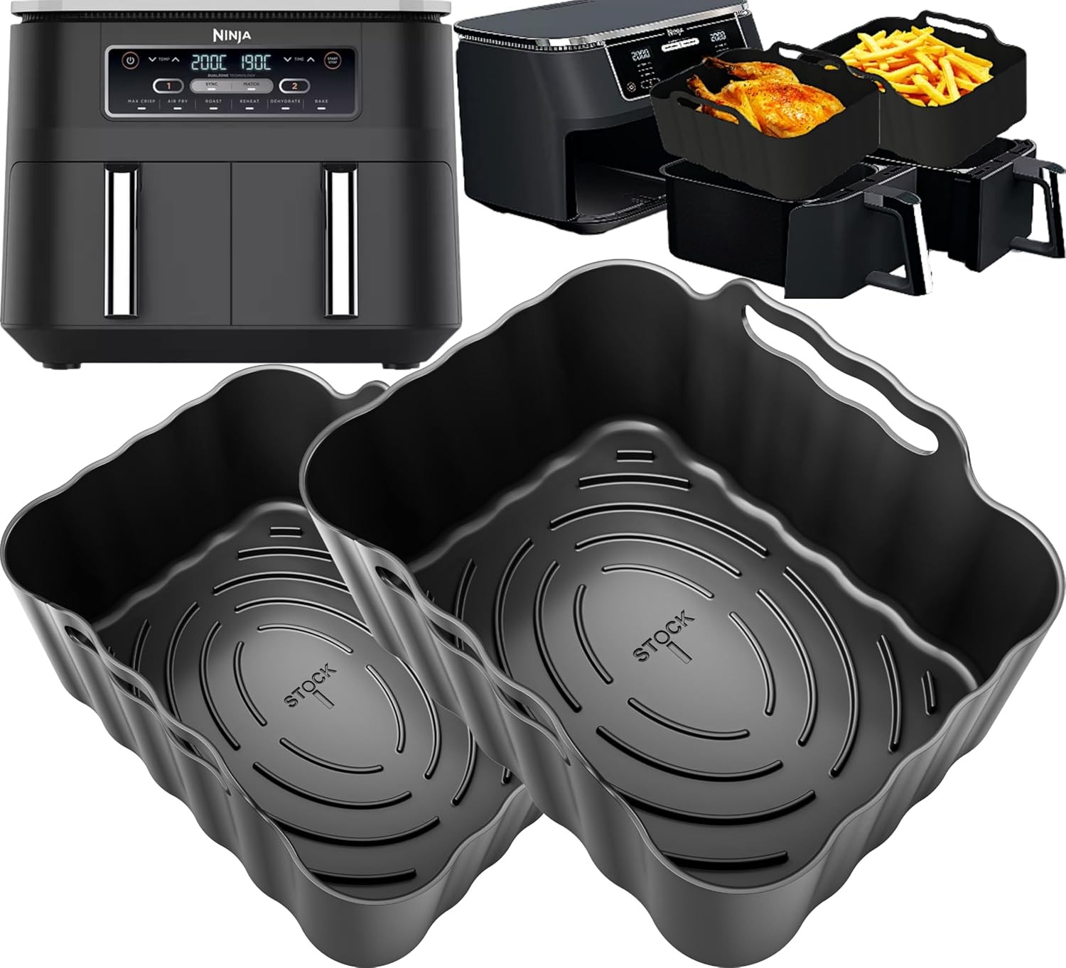 Silicone Air Fryer Liners for Ninja Dual 9.5L// 9L/Salter/Breville Halo Flexi Ai