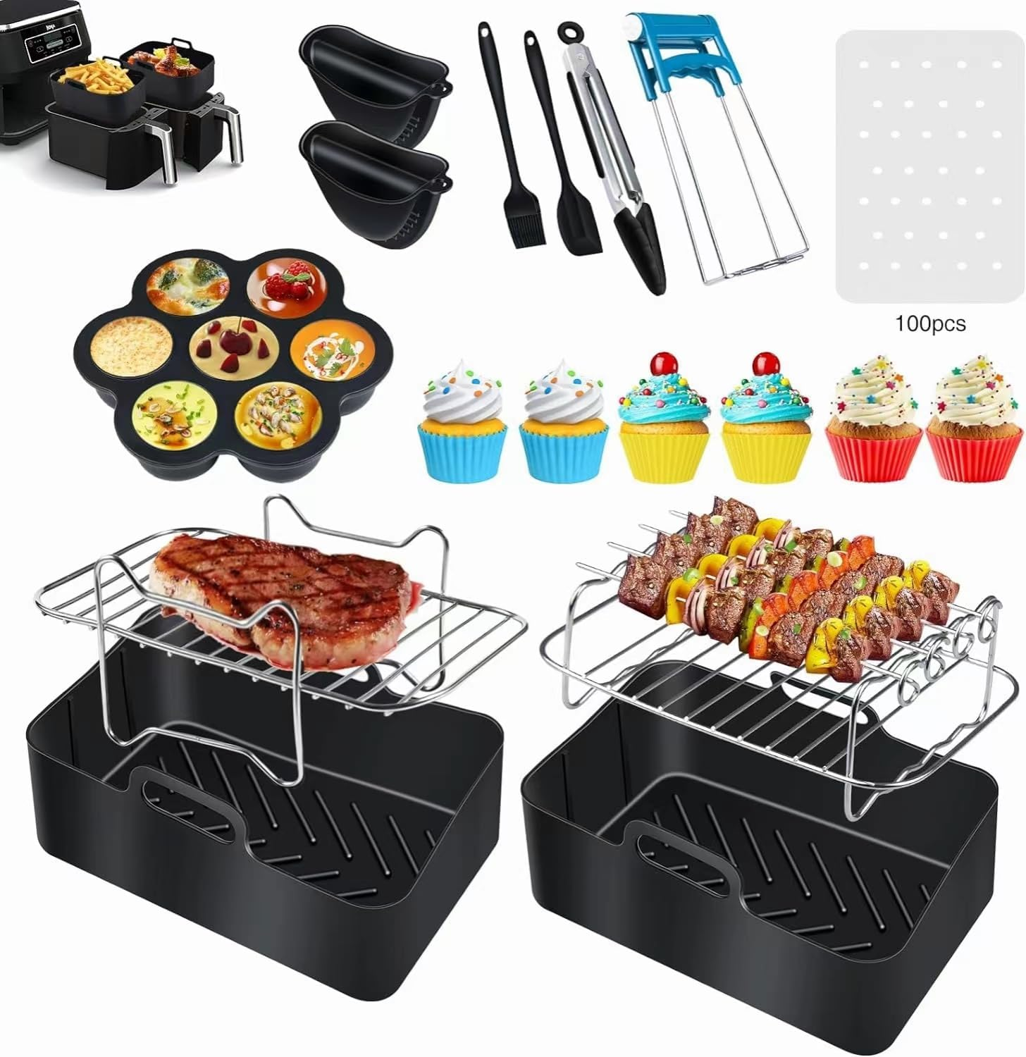 7 PCS Air Fryer Accessories, Silicone Liners for Ninja Dual AF400UK & Tower T17