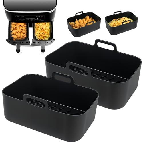 2Pcs Silicone Air Fryer Liners for Ninja Dual AF400UK AF300UK KEPLIN SL400UK Tower, Reusable Airfryer Accessories for EUARY Best Cookwise Instant Vortex MONCOOK 7.6-9.5L