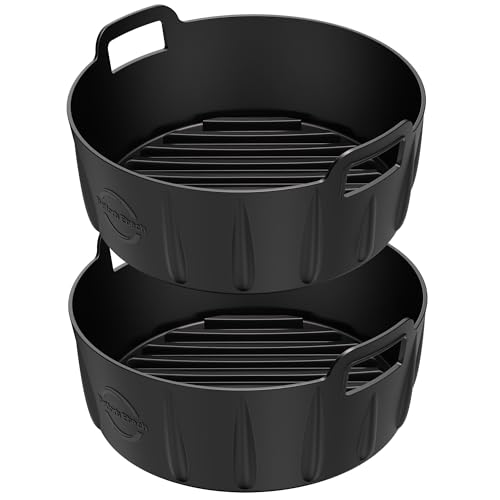 BYKITCHEN Air Fryer Silicone Liner, 2 PCS 9 Inch Extra Large Air Fryer Liners for Tower Oven, Air Fryer Accessories for Cosori 5.5L,Ninja Speedi 5.7L, Tefal 6.5L, Instant 5.7L Air Fryer(Inner 20.5CM)