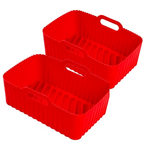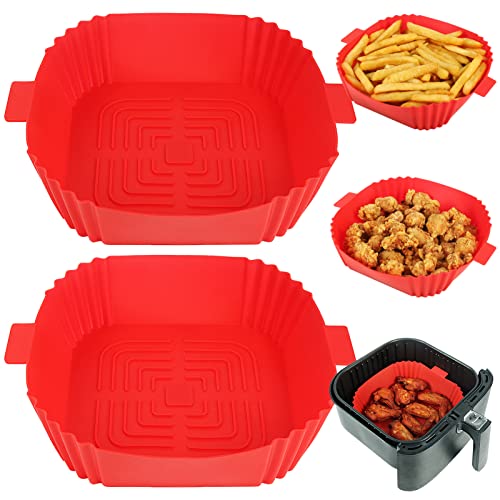 YQL Square Air Fryer Liners Silicone for Airfryer Baskets 3.5L-5.5L, 8 Inch (Inner Size: 6.5 Inch) Reusable Air Fryer Accessories, 2PCS Airfryer Trays for COSORI, Ninja, Tefal, Russell Hobbs (Red)