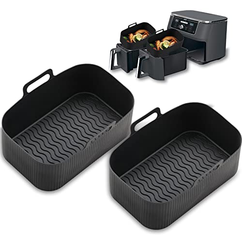 Silicone Air Fryer Liners for Ninja Dual Reusable,2Pcs Large Liners for Air Frye