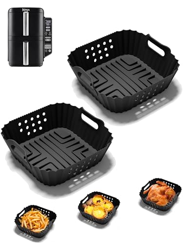 Silicone Air Fryer Liners for Ninja Air Fryer Dual Pack of 2, Airfryer Accessori