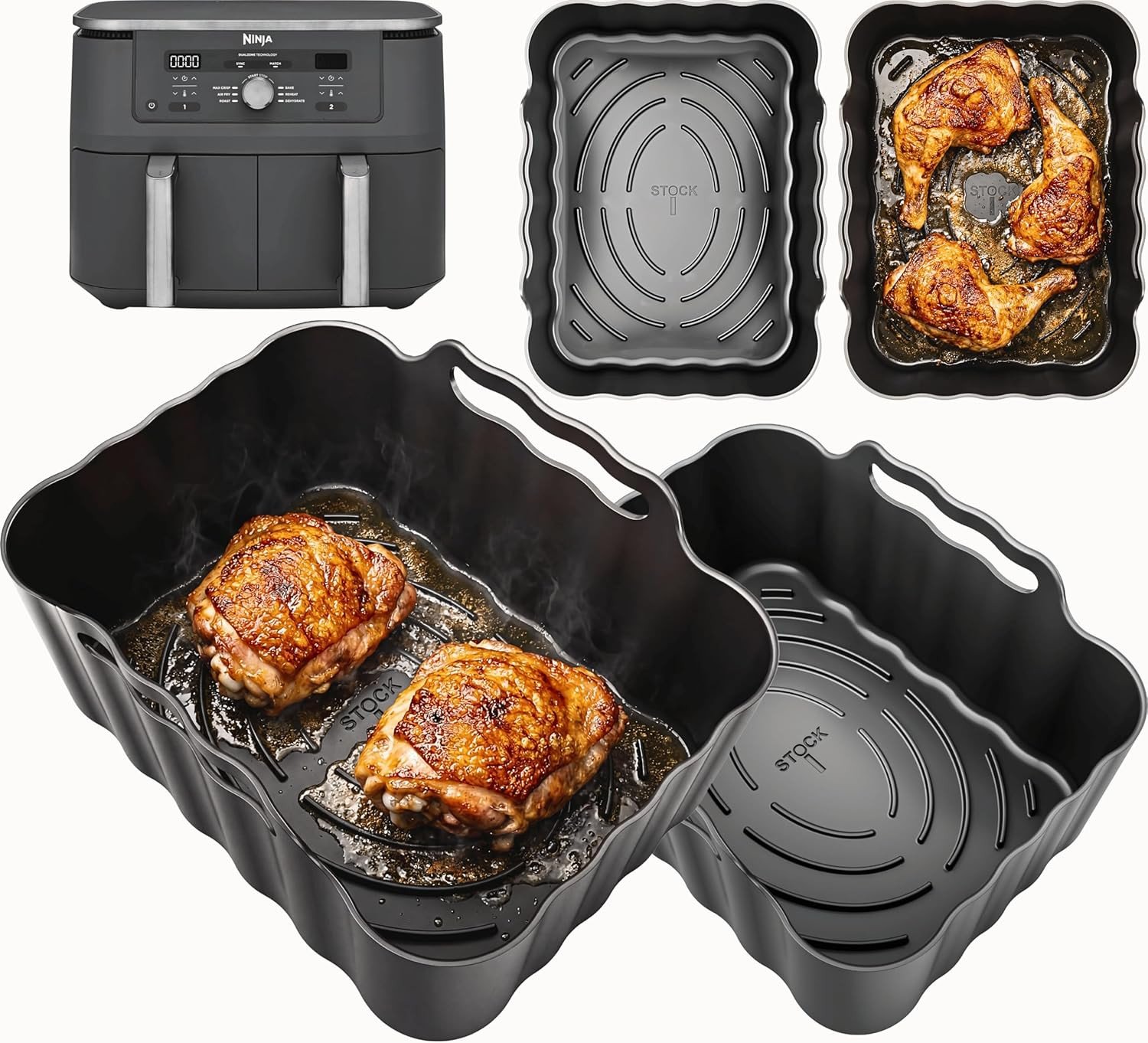 Silicone Air Fryer Liners for Ninja Dual, 2 Pack Air Fryer Accessories Reusable