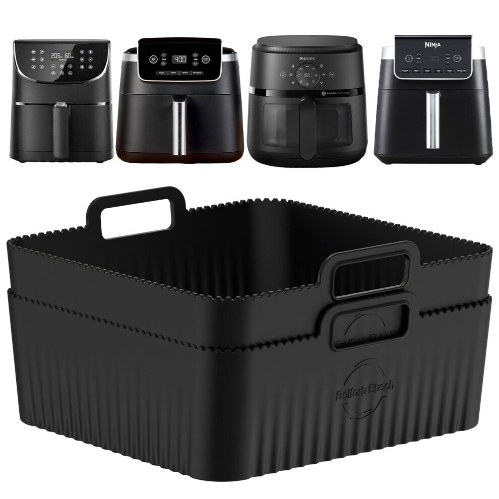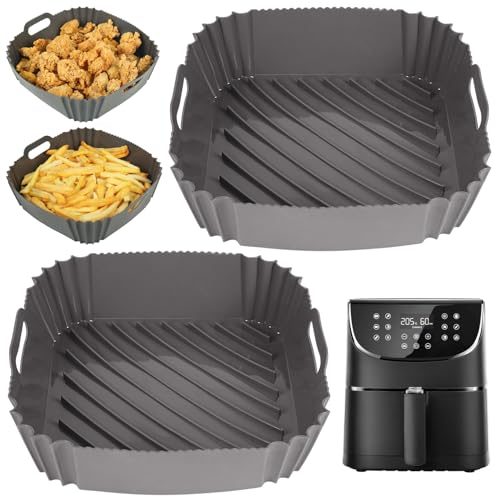 Air Fryer Liners-Square Silicone Air Fryer Liner Reusable,2pcs Air Fryer Silicone Liners Accessories Airfryer Liner Non-Stick Air Fryers Basket Tray for COSORI,Ninja,Tefal EY245840,Tower,Chefman