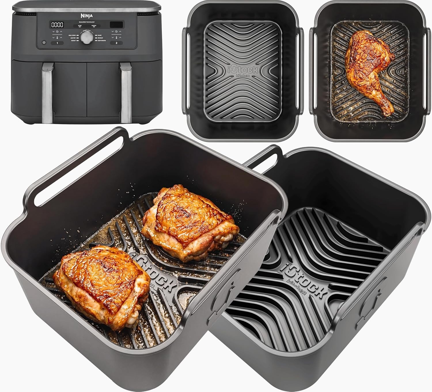 Silicone Air Fryer Liners for Ninja Dual Air Fryer, Air Fryer Silicone Liner for