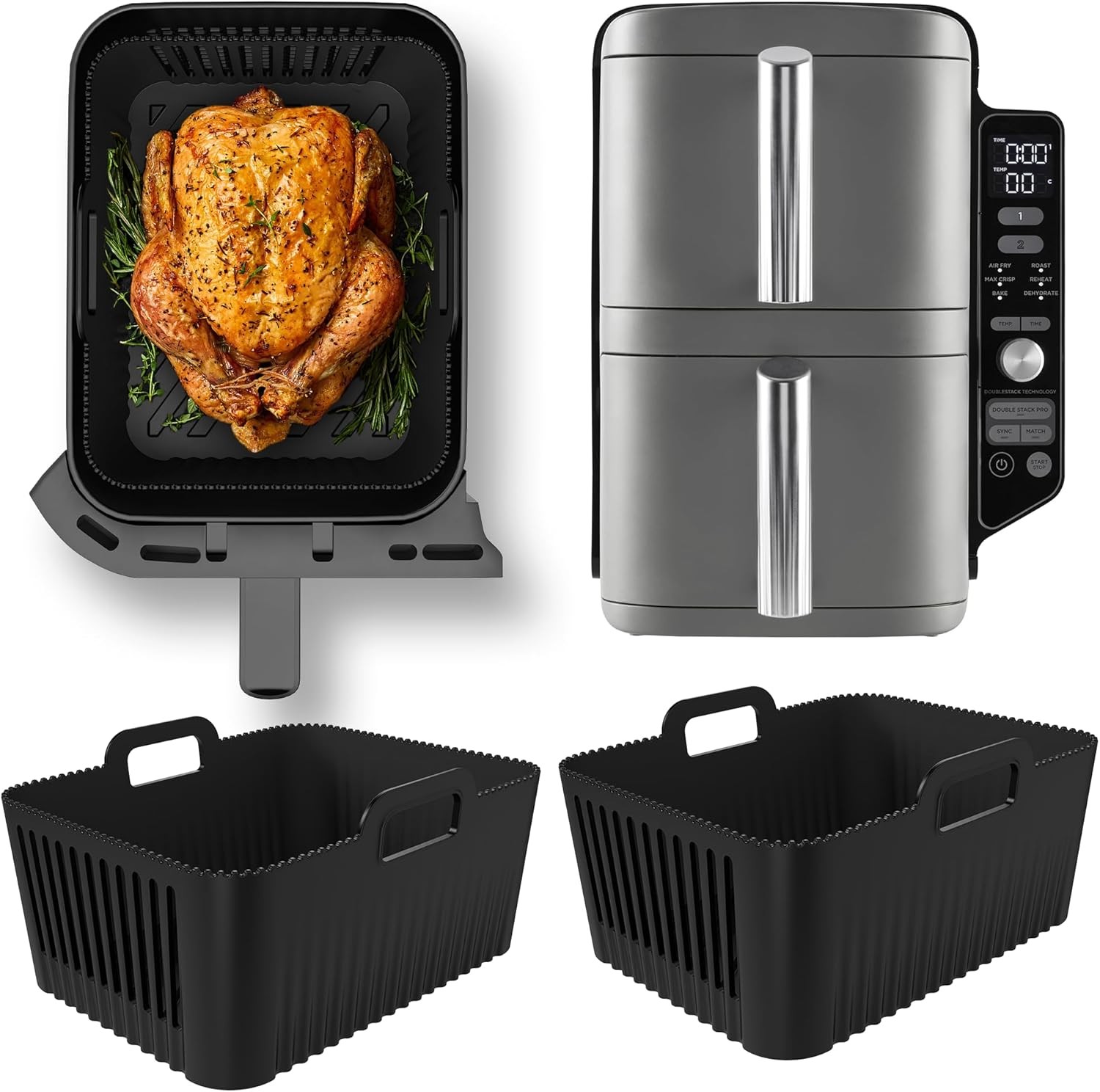 2Pcs Ninja Air Fryer Dual Accessories Liners Silicone Tower Air Fryer Accessory