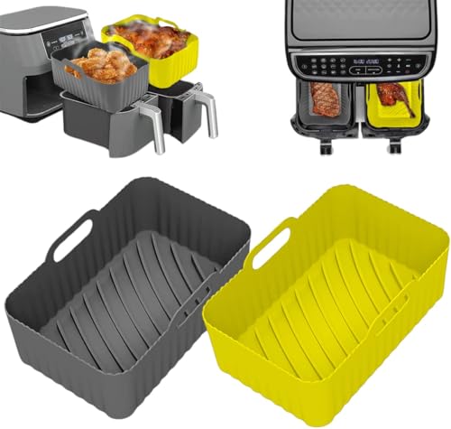 YQL Large Silicone Air Fryer Liner for Ninja AF451UK/AF400UK/SL400UK/SL400UKCP 9.5L/Instant Vortex/Salter/Emtronics Dual Air Fryers, Air Fryer Accessories Air Fryer Liners Reusable 2PCS