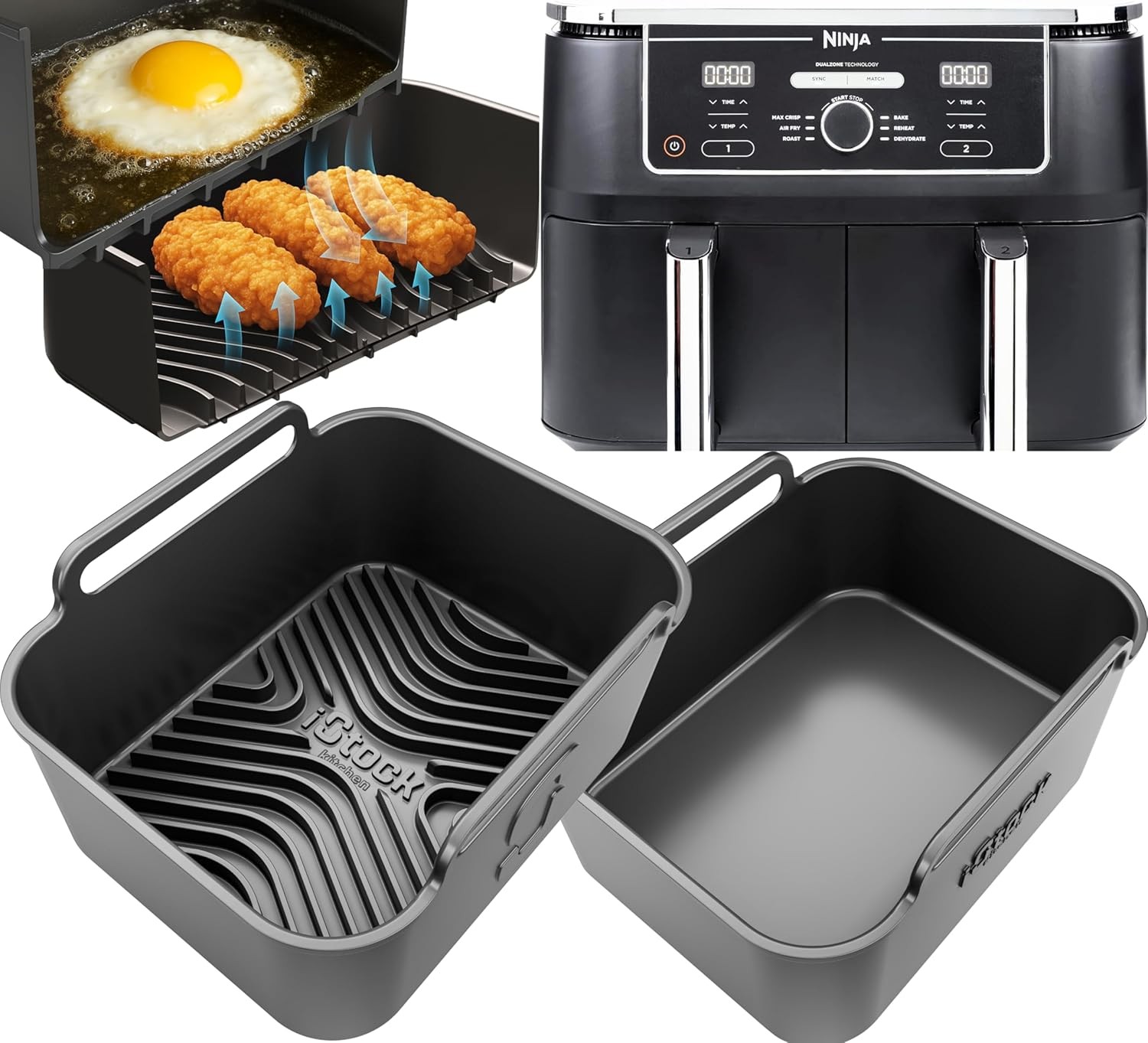 2-in-1 Ninja AF400UK Silicone Liners | Flat Base for Oil & Baking + Raised Ridg
