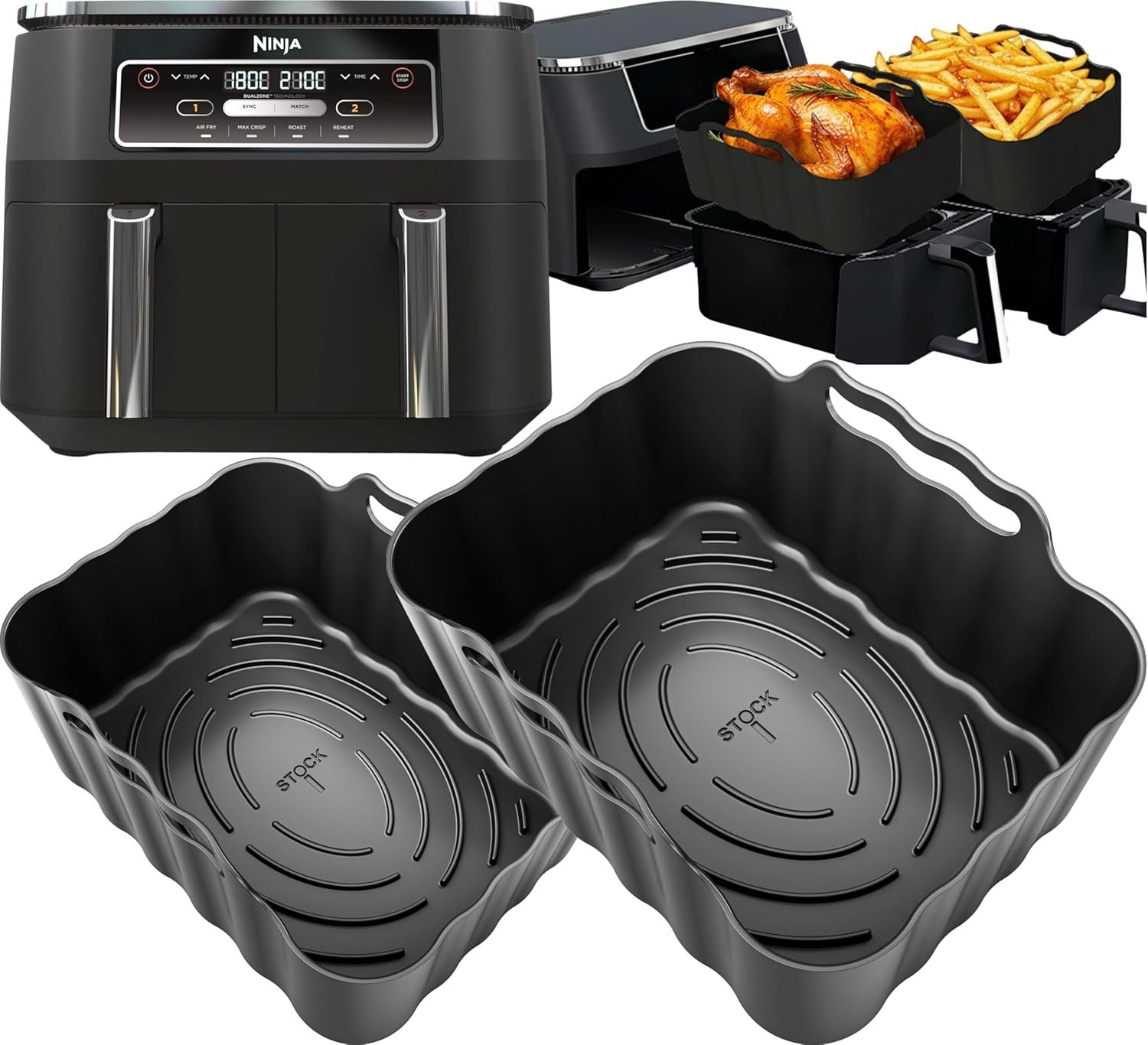 Silicone Air Fryer Liners 2Pack for Ninja Foodi Dual AF300UK AF400UK/KCP AF451UK