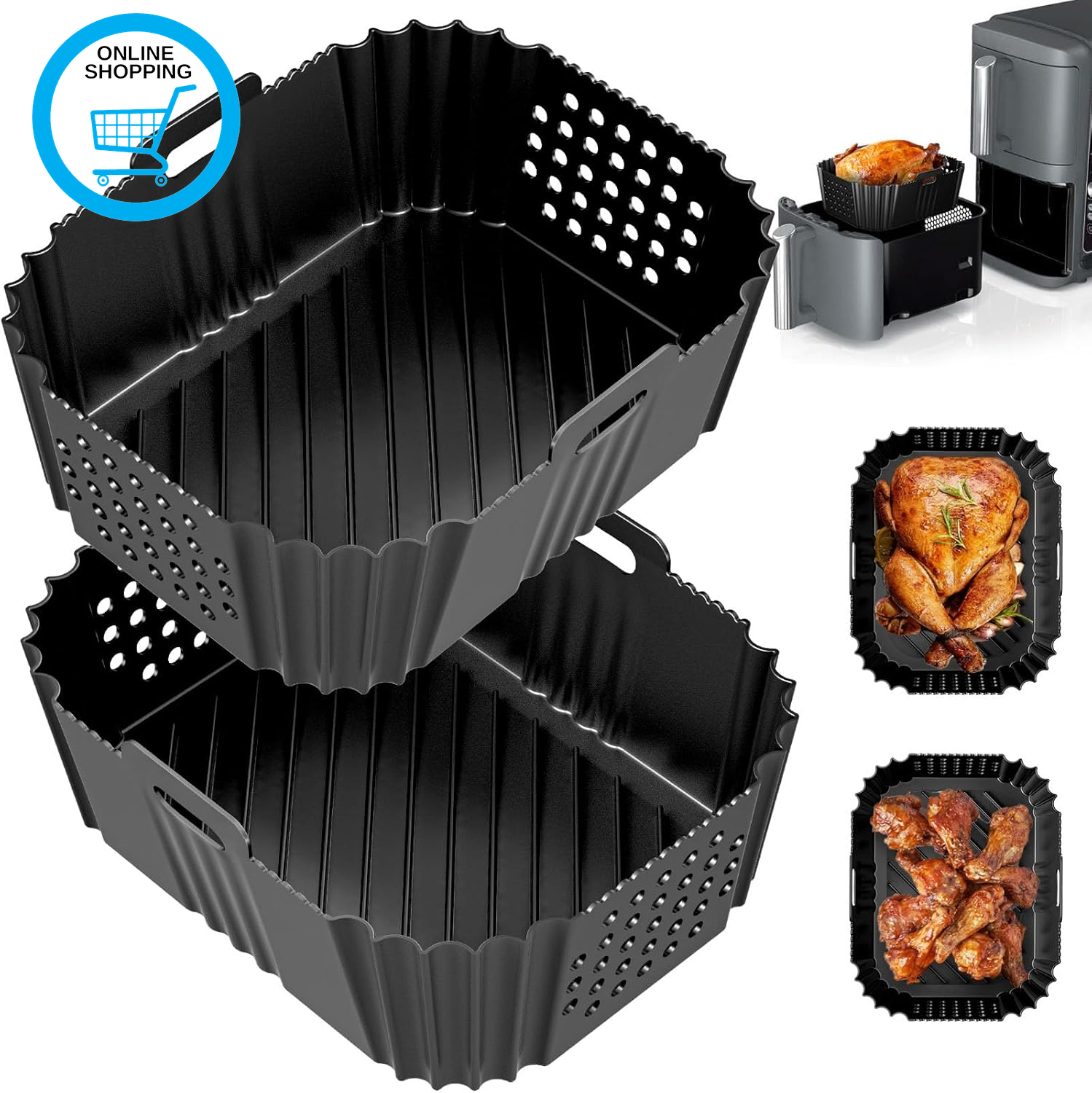 2PCS Air Fryer Silicone Liners for Ninja Double Stack 7.6L Air Fryer SL300UK