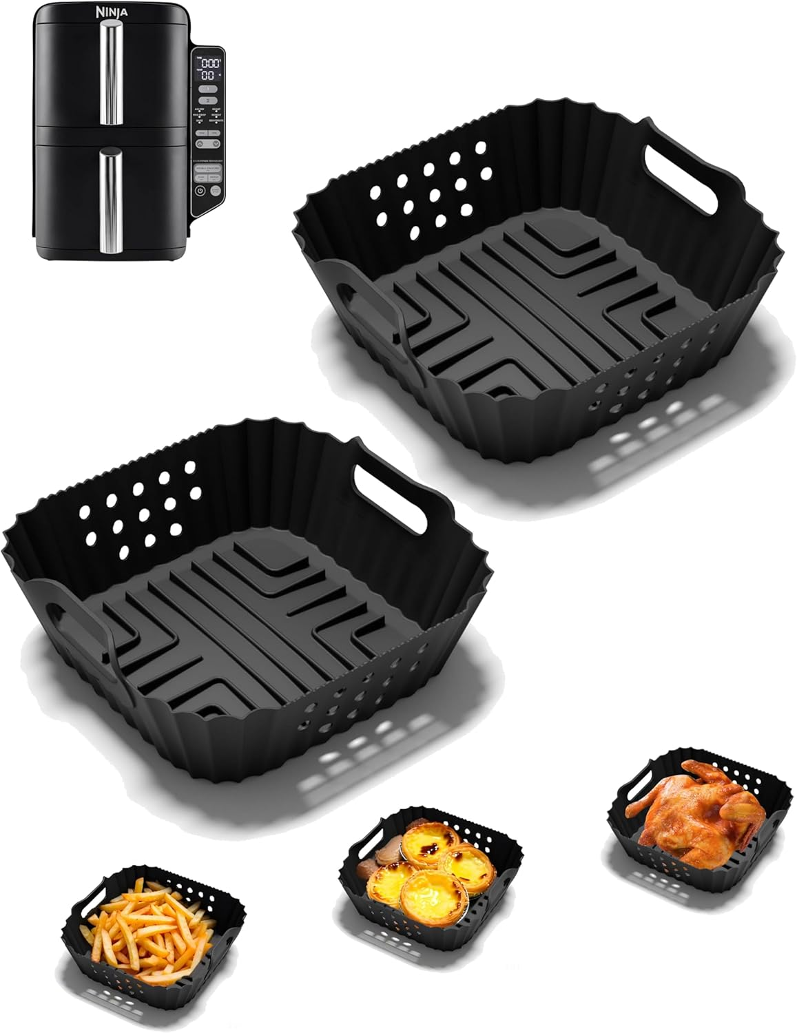 2PCS Silicone Air Fryer Liners for Ninja Double Stack XL 9.5L Air Fryer SL400UK,
