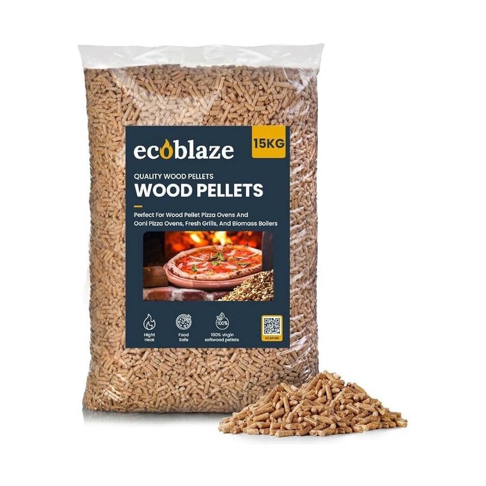 15KG Ecoblaze Premium Wood Pellets for Pizza Oven, Ooni, Ninja, BBQ Grill, Smokeless Fire Pit, Woodfire Pellet Smoker & Stove,100% Sustainable Biomas